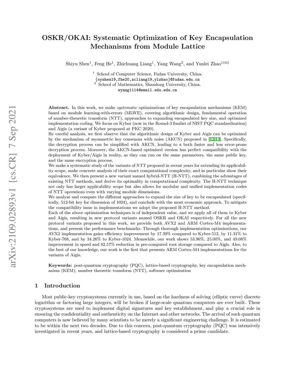 In this work, we make \emph{systematic} optimizations of key encapsulation mechanisms (KEM) based on module learning-with-errors (MLWE), covering algorithmic design, fundamental operation of number-theoretic transform (NTT), approaches to expanding encapsulated key size, and optimized implementation coding. We focus on Kyber (now in the Round-3 finalist of NIST PQC standardization) and Aigis (a variant of Kyber proposed at PKC 2020). By careful analysis, we first observe that the algorithmic design of Kyber and Aigis can be optimized by the mechanism of asymmetric key consensus with noise (AKCN) proposed in \cite{JZ16,JZ19}. Specifically, the decryption process can be simplified with AKCN, leading to a both faster and less error-prone decryption process. Moreover, the AKCN-based optimized version has perfect compatibility with the deployment of Kyber/Aigis in reality, as they can run on the same parameters, the same public key, and the same encryption process. We make a systematic study of the variants of NTT proposed in recent years for extending its applicability scope, make concrete analysis of their exact computational complexity, and in particular show their equivalence. We then present a new variant named hybrid-NTT (H-NTT), combining the advantages of existing NTT methods, and derive its optimality in computational complexity. The H-NTT technique not only has larger applicability scope but also allows for modular and unified implementation codes of NTT operations even with varying module dimensions. We analyze and compare the different approaches to expand the size of key to be encapsulated (specifically, 512-bit key for dimension of 1024), and conclude with the most economic approach. To mitigate the compatibility issue in implementations we adopt the proposed H-NTT method.