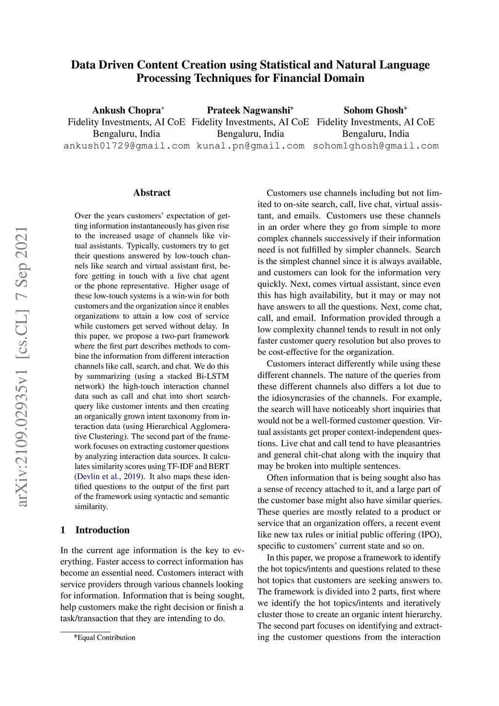 Over the years customers' expectation of getting information instantaneously has given rise to the increased usage of channels like virtual assistants. Typically, customers try to get their questions answered by low-touch channels like search and virtual assistant first, before getting in touch with a live chat agent or the phone representative. Higher usage of these low-touch systems is a win-win for both customers and the organization since it enables organizations to attain a low cost of service while customers get served without delay. In this paper, we propose a two-part framework where the first part describes methods to combine the information from different interaction channels like call, search, and chat. We do this by summarizing (using a stacked Bi-LSTM network) the high-touch interaction channel data such as call and chat into short searchquery like customer intents and then creating an organically grown intent taxonomy from interaction data (using Hierarchical Agglomerative Clustering). The second part of the framework focuses on extracting customer questions by analyzing interaction data sources. It calculates similarity scores using TF-IDF and BERT(Devlin et al., 2019). It also maps these identified questions to the output of the first part of the framework using syntactic and semantic similarity.