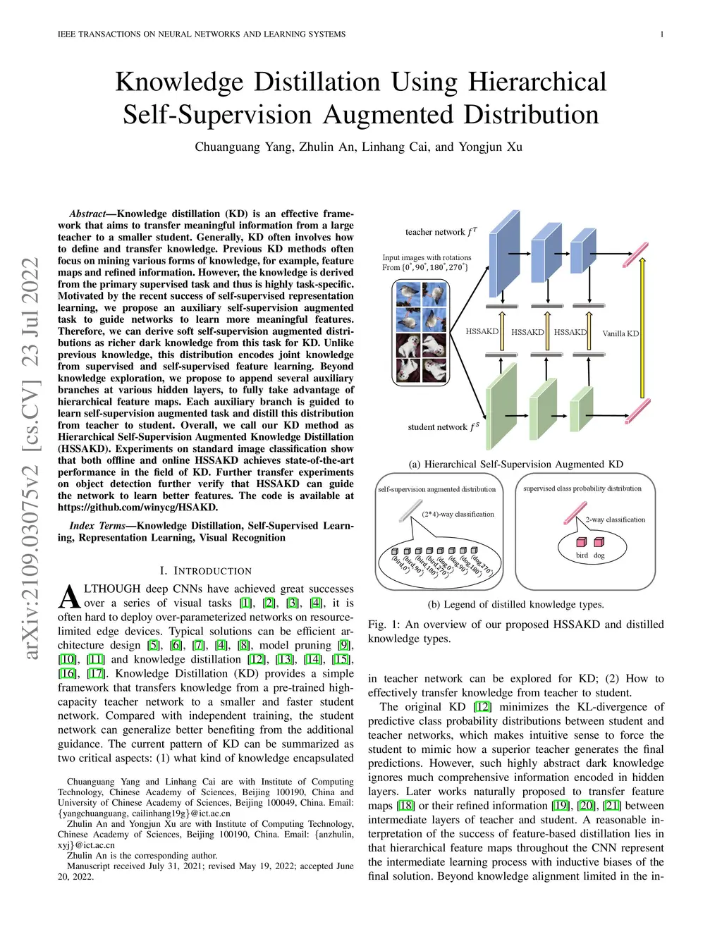 Knowledge Distillation Using Hierarchical Self-Supervision Augmented