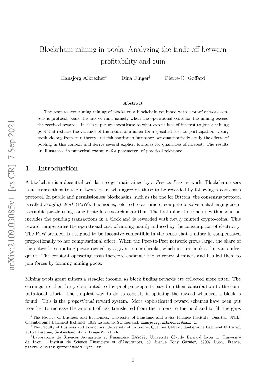 Blockchain mining in pools: Analyzing the trade-off between