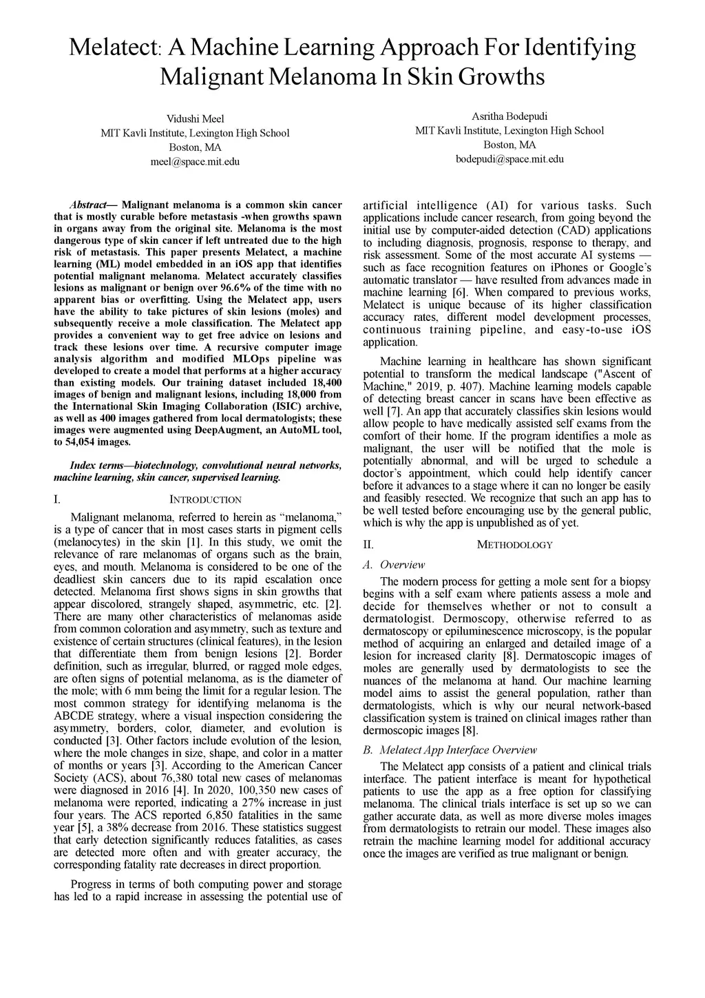 Melatect: A Machine Learning Model Approach For Identifying Malignant