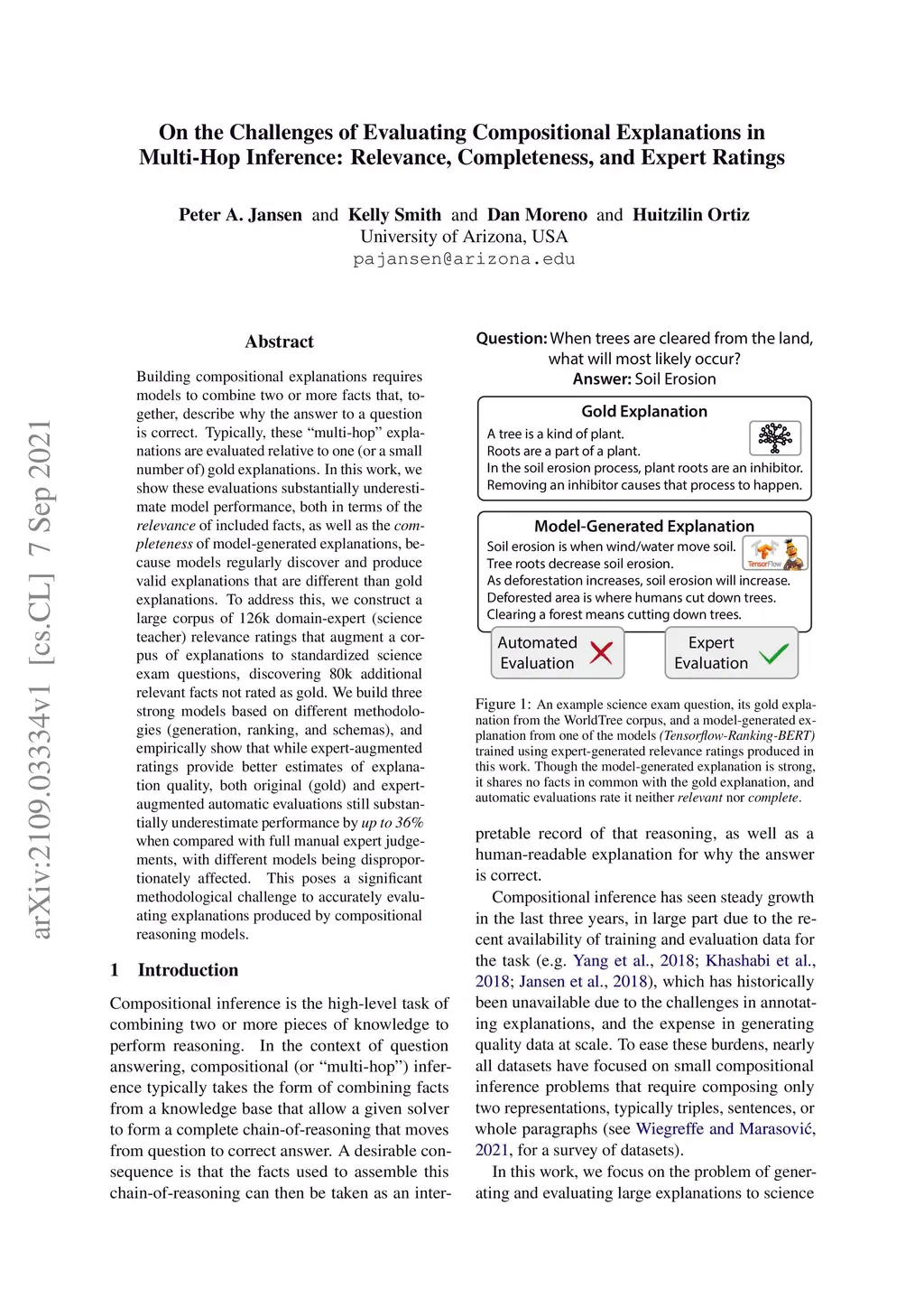 Building compositional explanations requires models to combine two or more facts that, together, describe why the answer to a question is correct. Typically, these "multi-hop" explanations are evaluated relative to one (or a small number of) gold explanations. In this work, we show these evaluations substantially underestimate model performance, both in terms of the relevance of included facts, as well as the completeness of model-generated explanations, because models regularly discover and produce valid explanations that are different than gold explanations. To address this, we construct a large corpus of 126k domain-expert (science teacher) relevance ratings that augment a corpus of explanations to standardized science exam questions, discovering 80k additional relevant facts not rated as gold. We build three strong models based on different methodologies (generation, ranking, and schemas), and empirically show that while expert-augmented ratings provide better estimates of explanation quality, both original (gold) and expert-augmented automatic evaluations still substantially underestimate performance by up to 36% when compared with full manual expert judgements, with different models being disproportionately affected. This poses a significant methodological challenge to accurately evaluating explanations produced by compositional reasoning models.