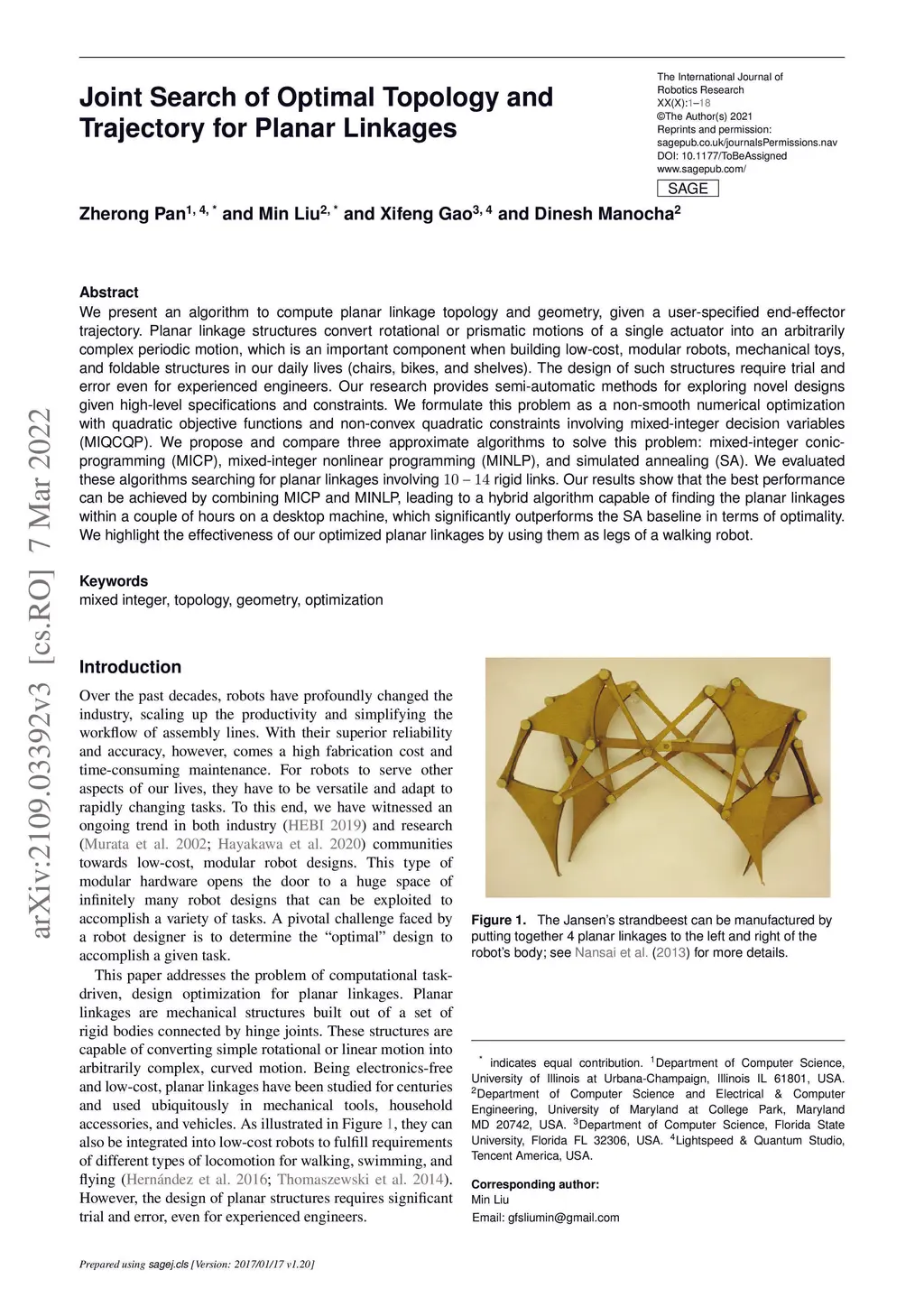 Joint Search of Optimal Topology and Trajectory for Planar Linkages
