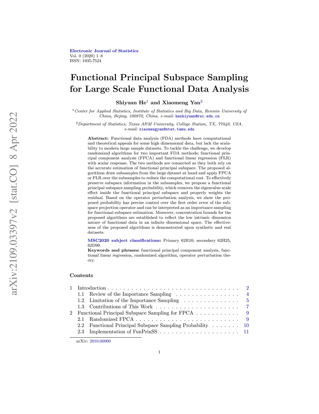 Functional Principal Subspace Sampling for Large Scale Functional Data