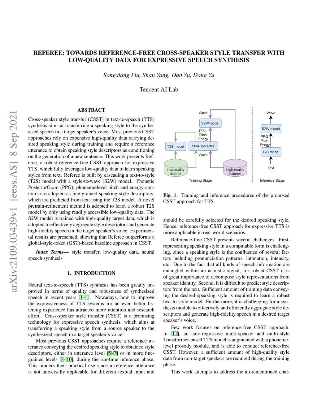 Referee: Towards reference-free cross-speaker style transfer with