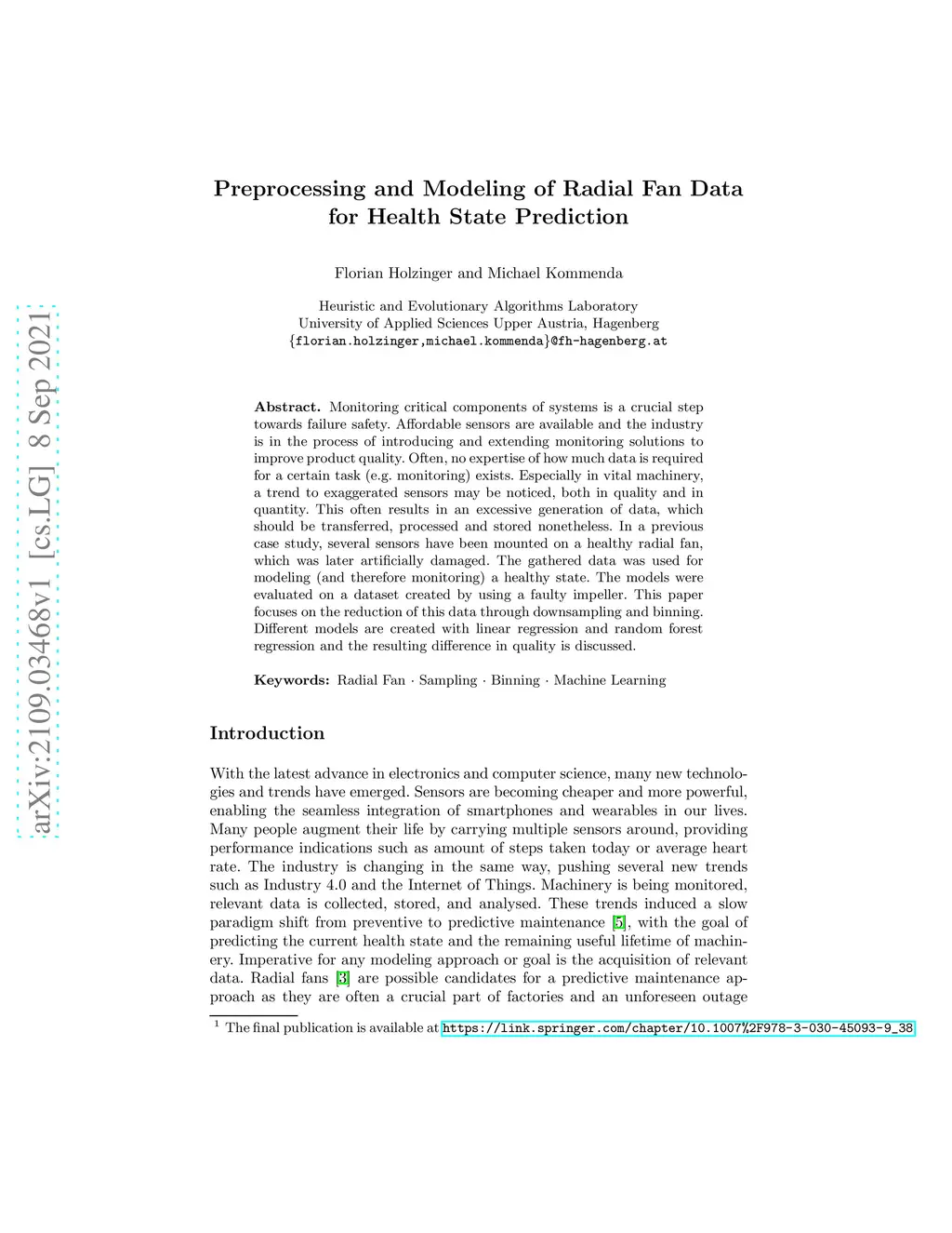 Preprocessing and Modeling of Radial Fan Data for Health State