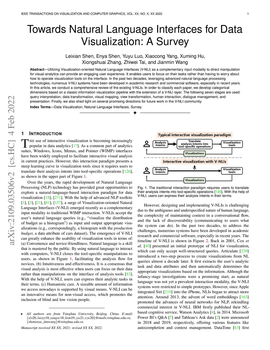Towards Natural Language Interfaces for Data Visualization: A Survey