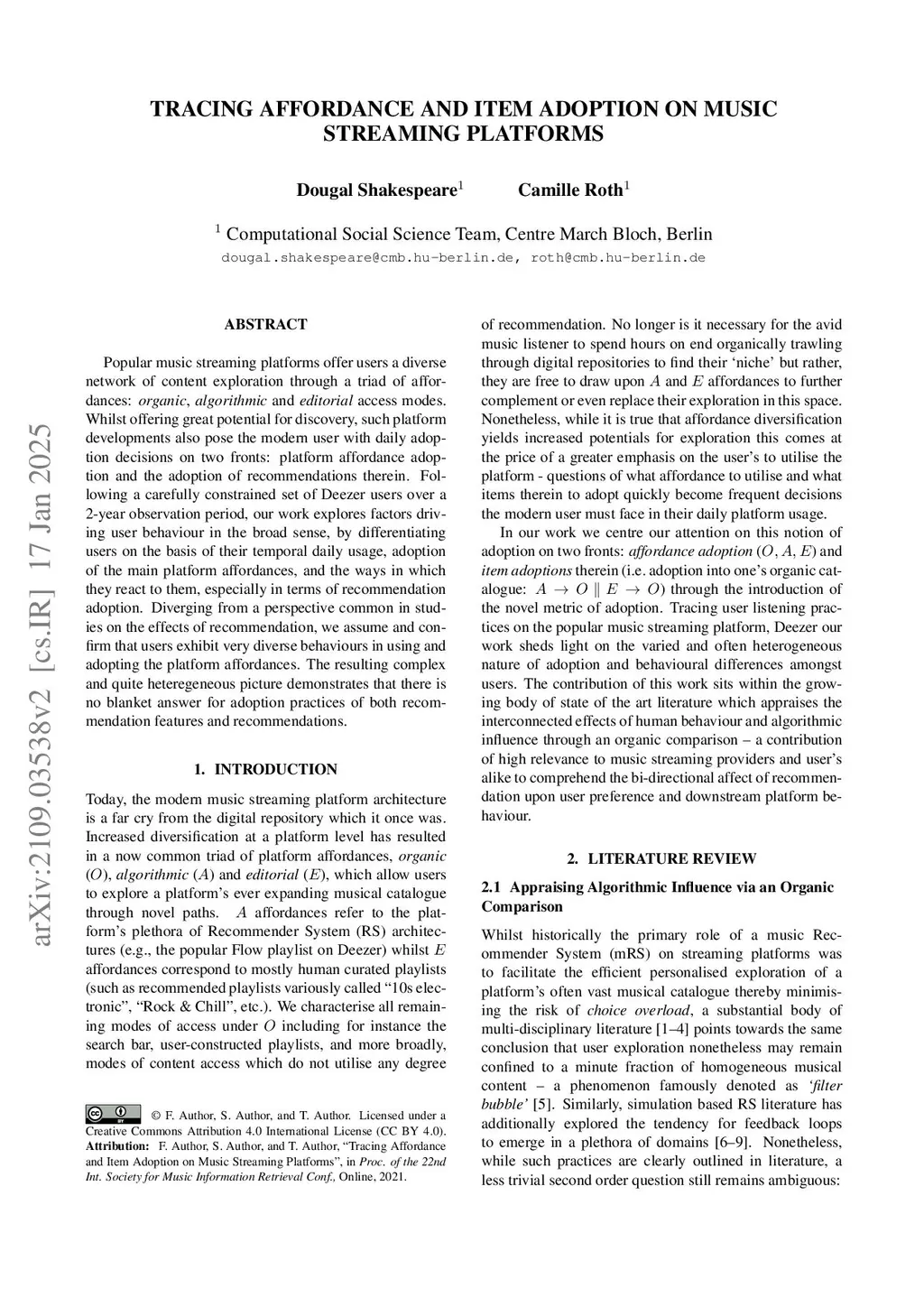 Tracing Affordance and Item Adoption on Music Streaming Platforms