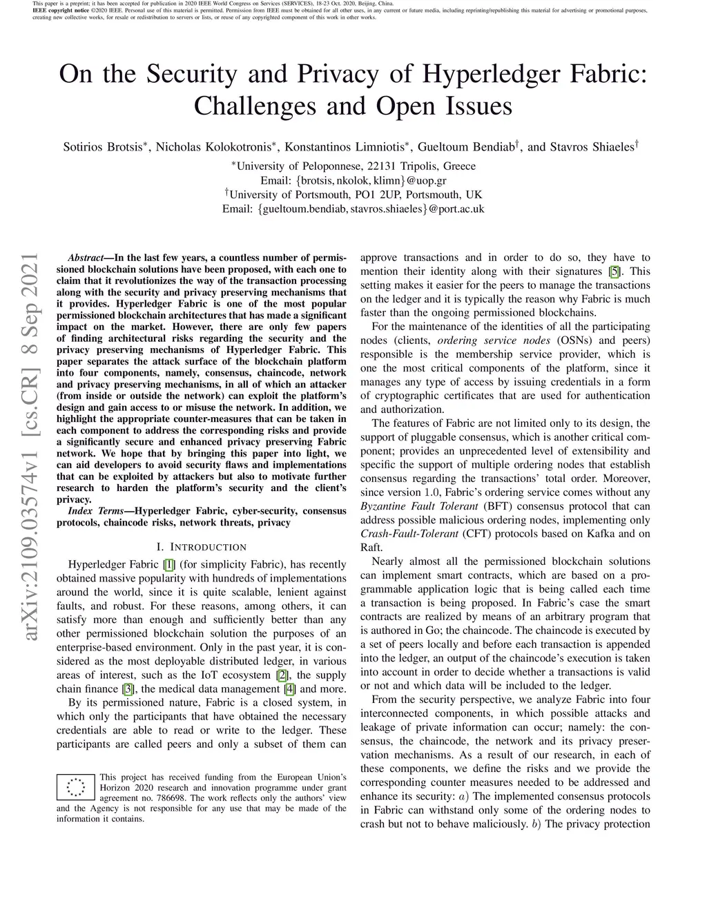 On the Security and Privacy of Hyperledger Fabric:Challenges and Open