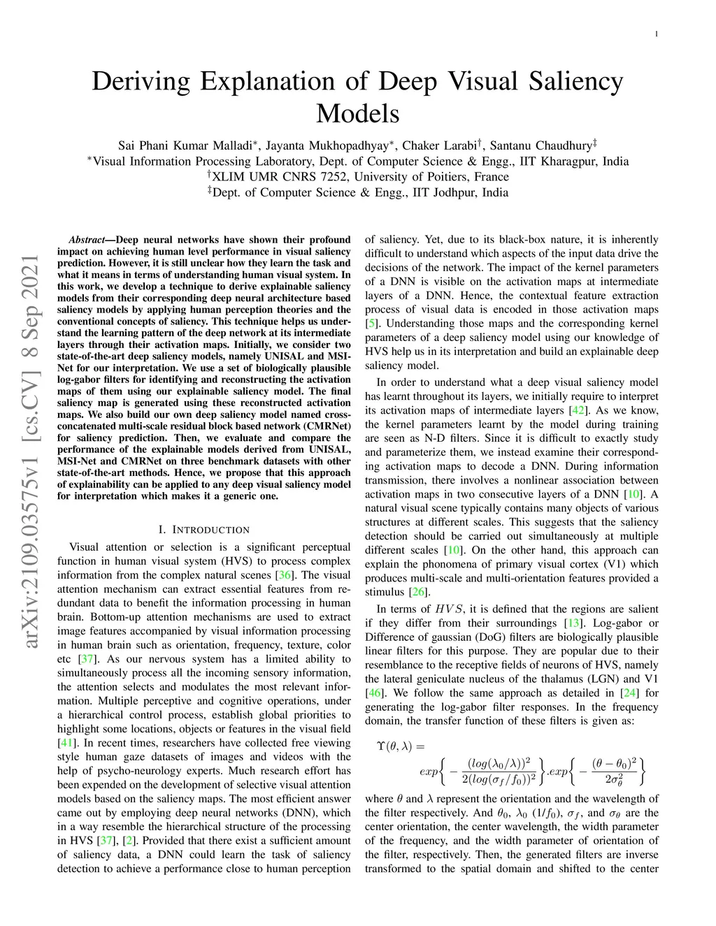 Deep neural networks have shown their profound impact on achieving human level performance in visual saliency prediction. However, it is still unclear how they learn the task and what it means in terms of understanding human visual system. In this work, we develop a technique to derive explainable saliency models from their corresponding deep neural architecture based saliency models by applying human perception theories and the conventional concepts of saliency. This technique helps us understand the learning pattern of the deep network at its intermediate layers through their activation maps. Initially, we consider two state-of-the-art deep saliency models, namely UNISAL and MSI-Net for our interpretation. We use a set of biologically plausible log-gabor filters for identifying and reconstructing the activation maps of them using our explainable saliency model. The final saliency map is generated using these reconstructed activation maps. We also build our own deep saliency model named cross-concatenated multi-scale residual block based network (CMRNet) for saliency prediction. Then, we evaluate and compare the performance of the explainable models derived from UNISAL, MSI-Net and CMRNet on three benchmark datasets with other state-of-the-art methods. Hence, we propose that this approach of explainability can be applied to any deep visual saliency model for interpretation which makes it a generic one.