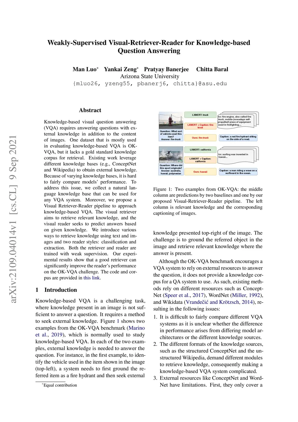 Weakly-Supervised Visual-Retriever-Reader for Knowledge-based Question