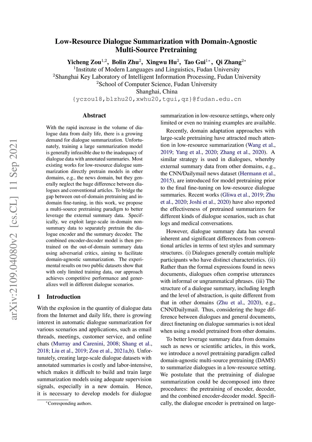 Low-Resource Dialogue Summarization with Domain-Agnostic Multi-Source