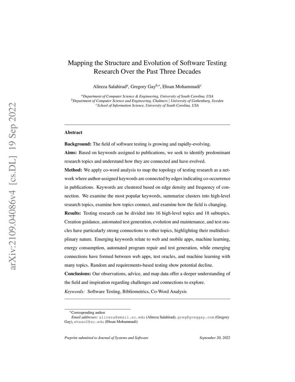 Mapping the Structure and Evolution of Software Testing Research Over