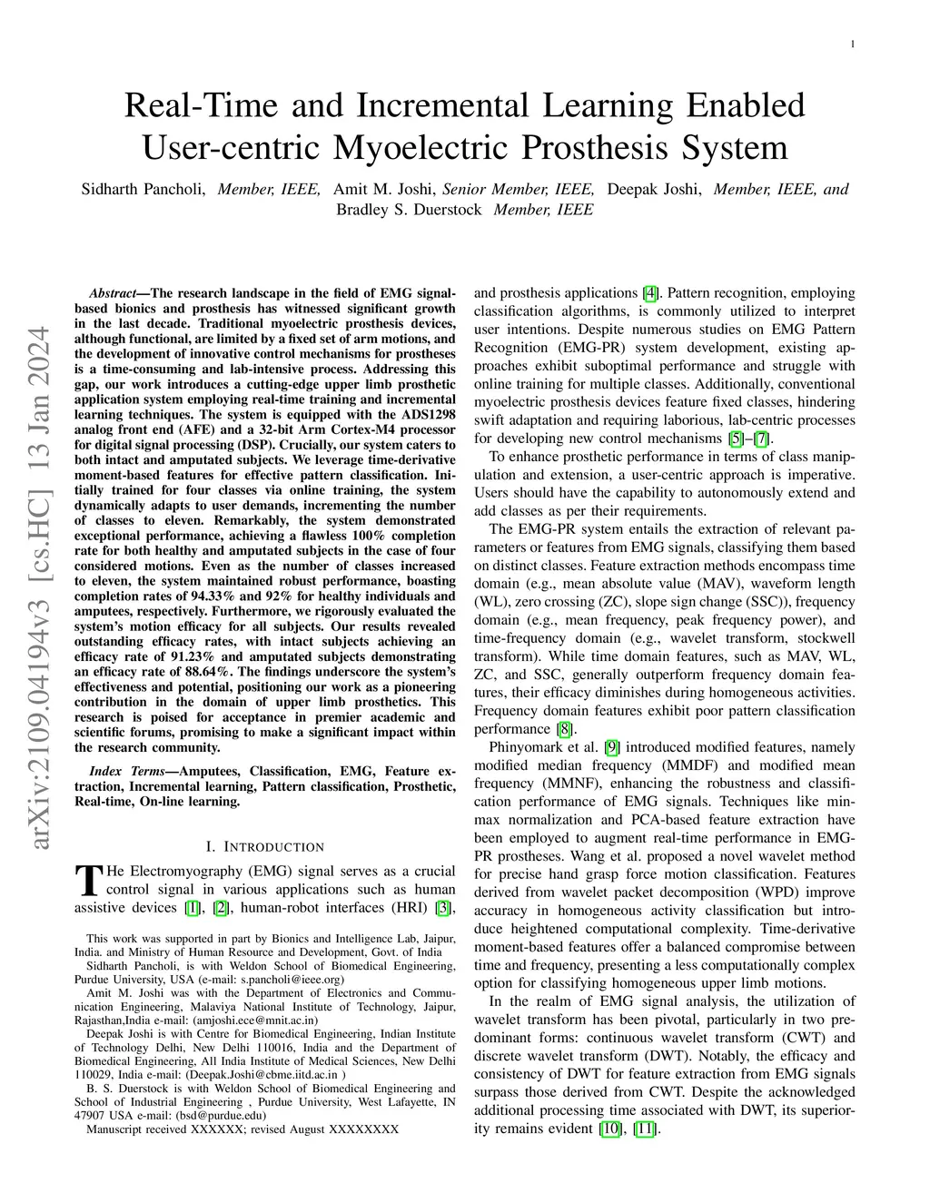 Novel Time Domain Based Upper-Limb Prosthesis Control using Incremental