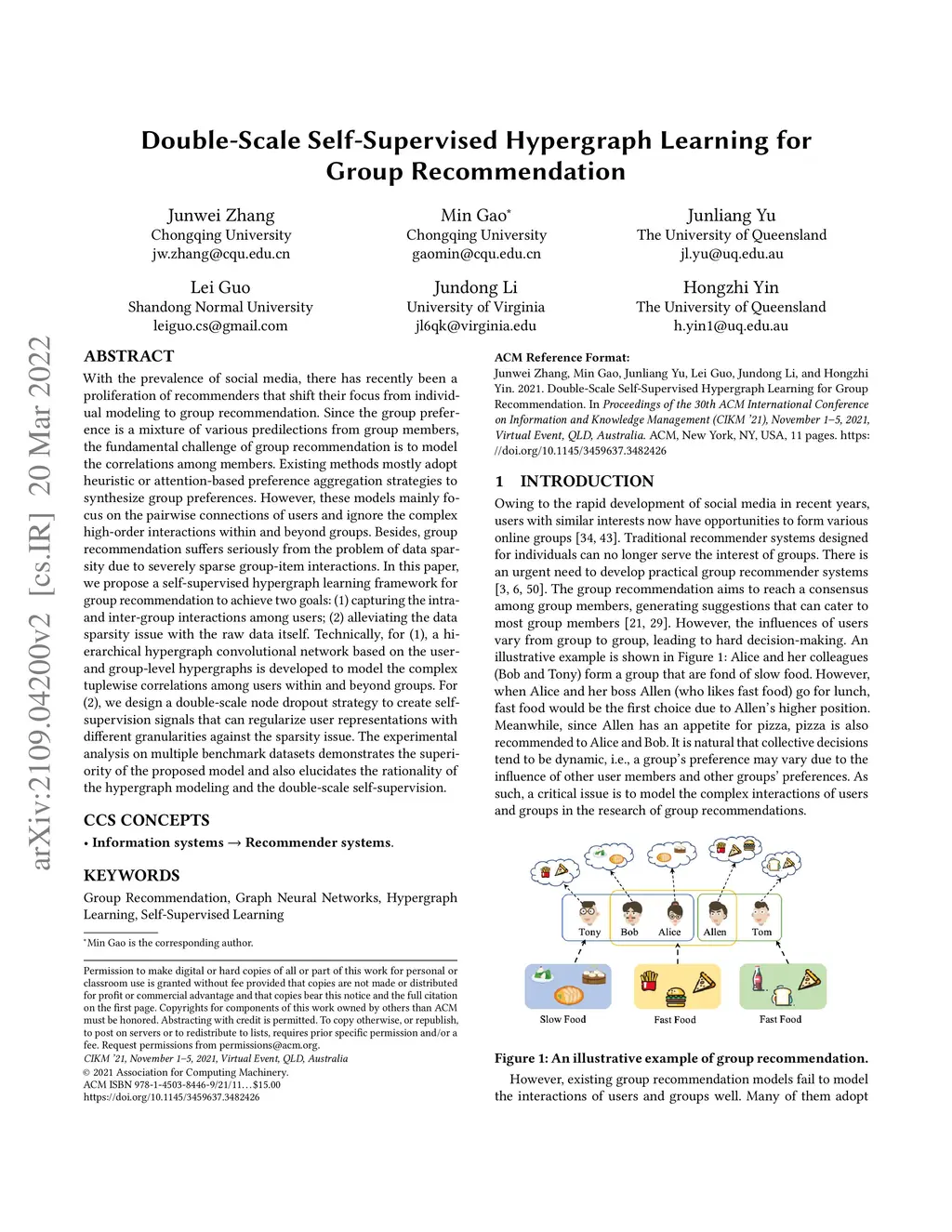 Double-Scale Self-Supervised Hypergraph Learning for Group