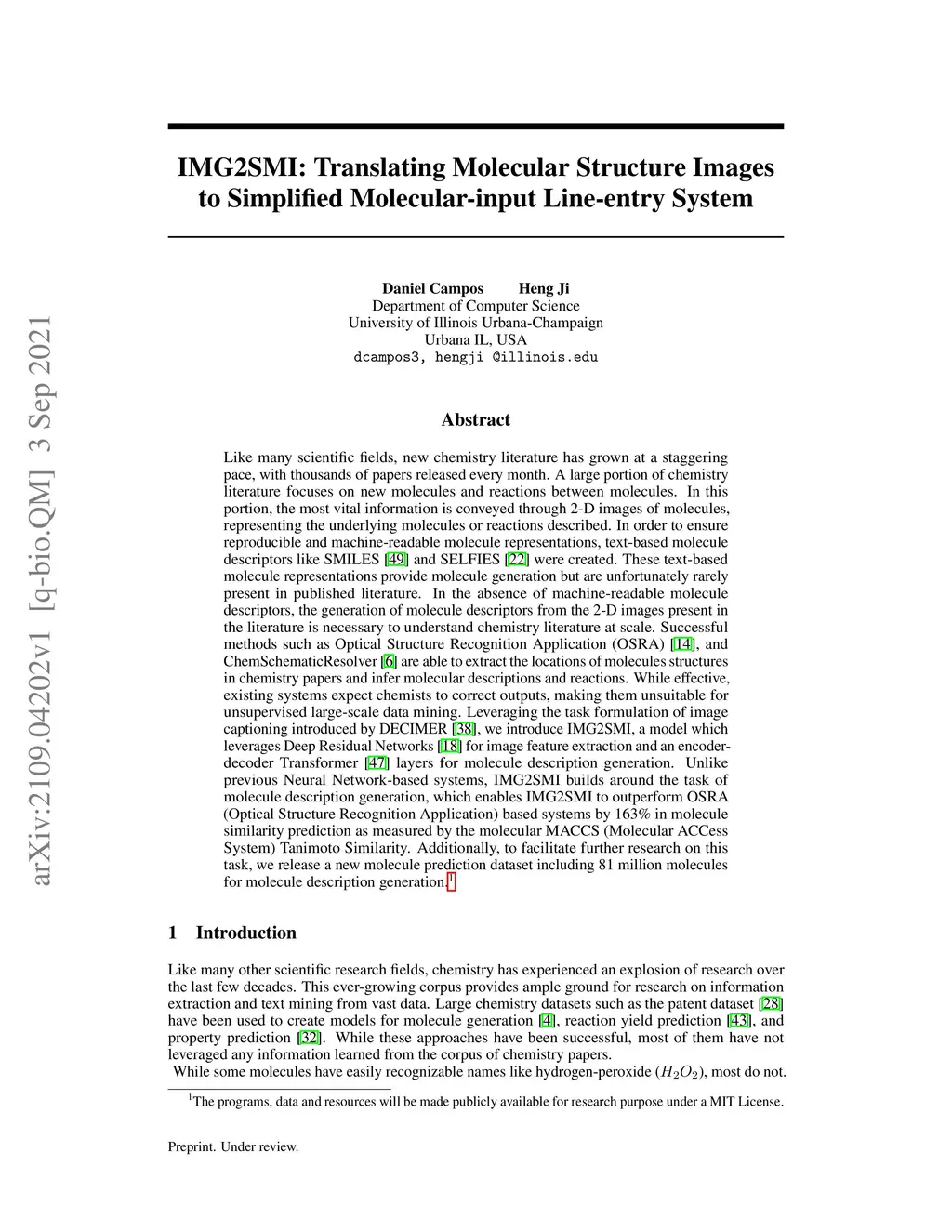 IMG2SMI: Translating Molecular Structure Images to Simplified