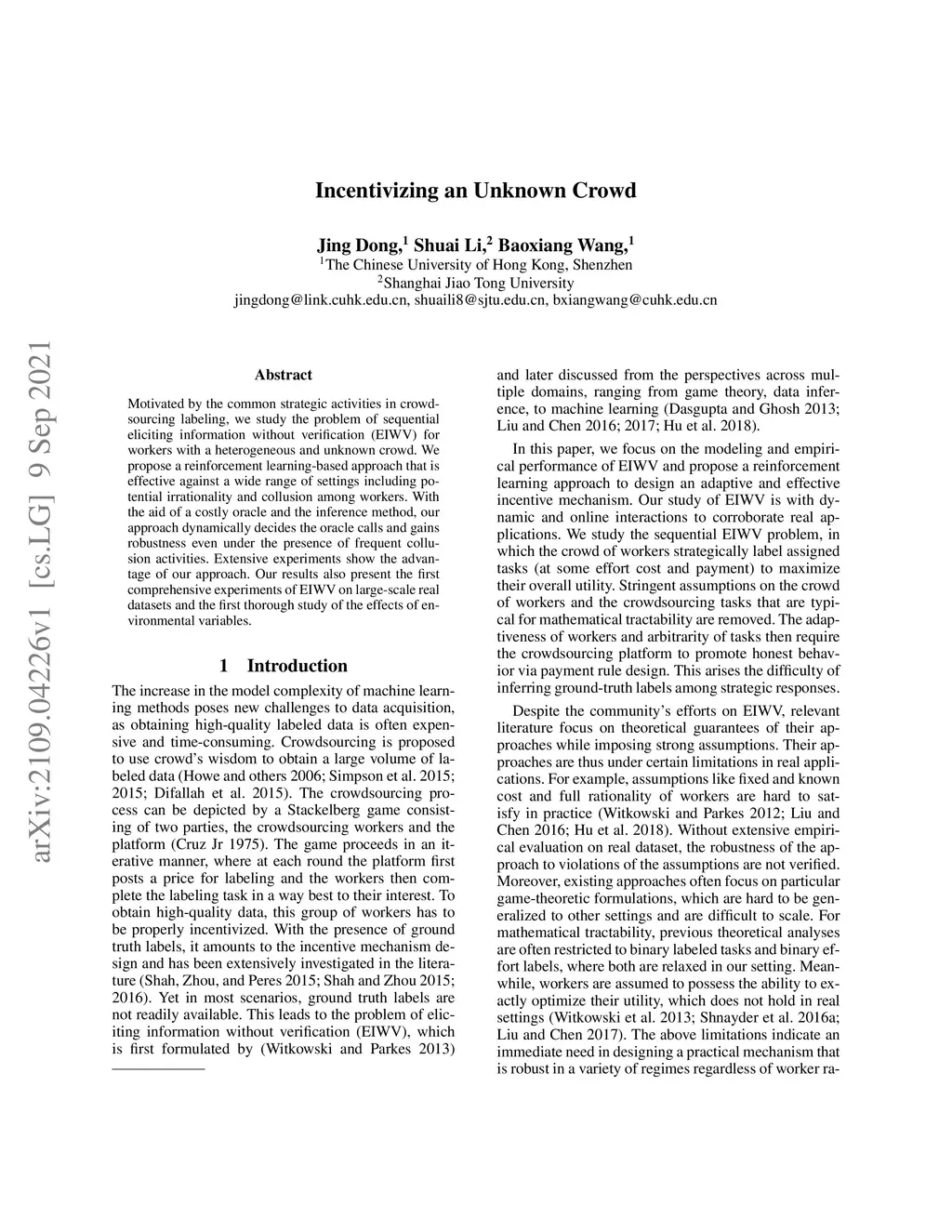 Motivated by the common strategic activities in crowdsourcing labeling, we study the problem of sequential eliciting information without verification (EIWV) for workers with a heterogeneous and unknown crowd. We propose a reinforcement learning-based approach that is effective against a wide range of settings including potential irrationality and collusion among workers. With the aid of a costly oracle and the inference method, our approach dynamically decides the oracle calls and gains robustness even under the presence of frequent collusion activities. Extensive experiments show the advantage of our approach. Our results also present the first comprehensive experiments of EIWV on large-scale real datasets and the first thorough study of the effects of environmental variables.