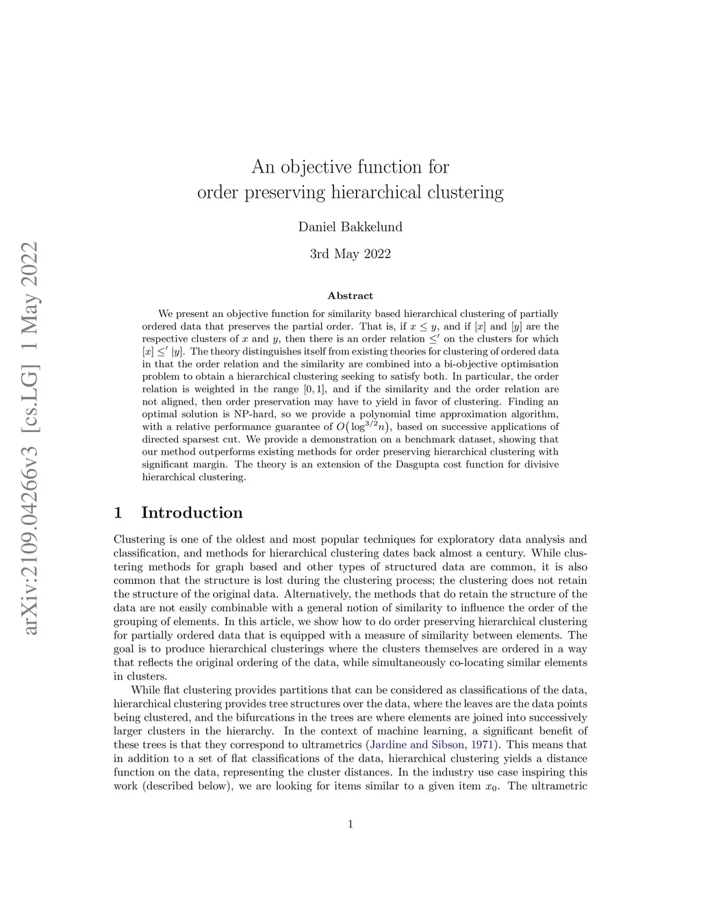 An objective function for order preserving hierarchical clustering