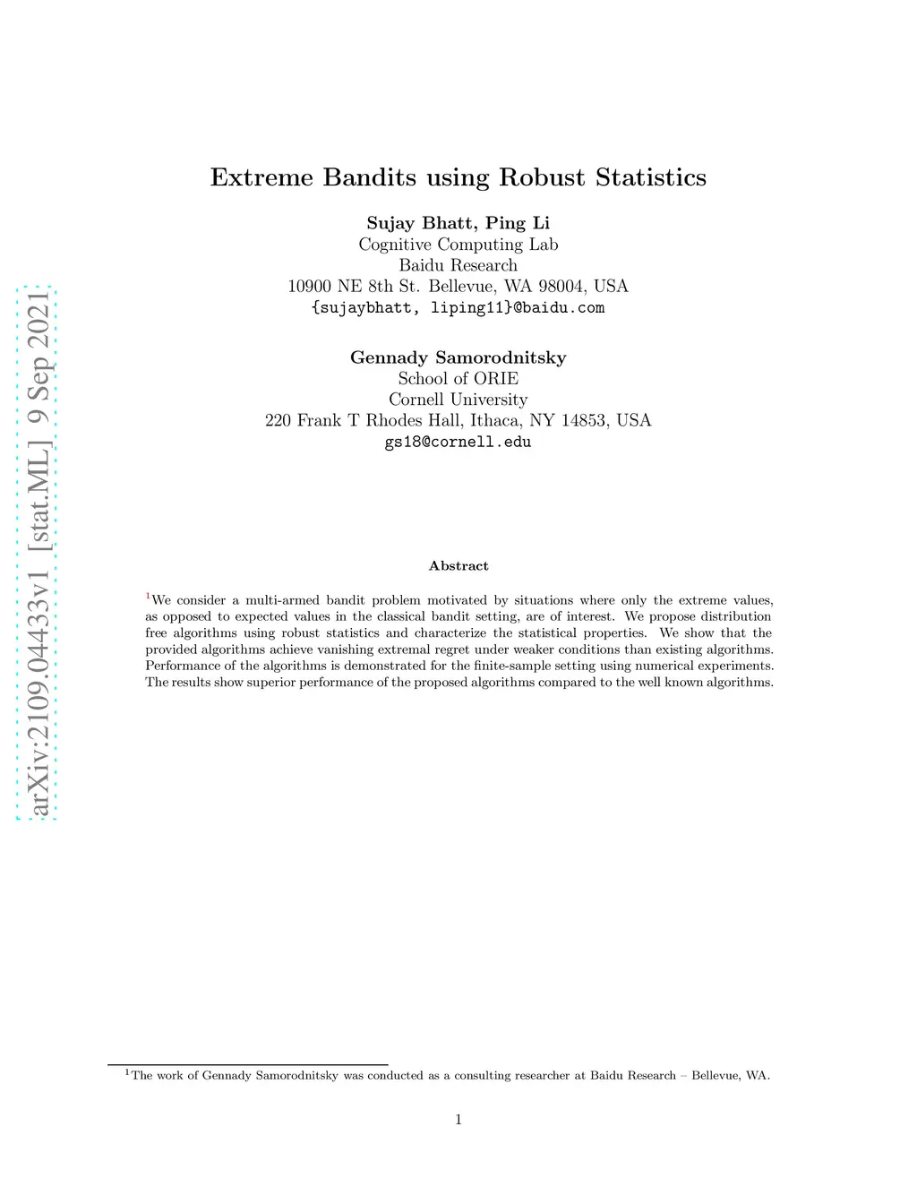 Extreme Bandits using Robust Statistics
