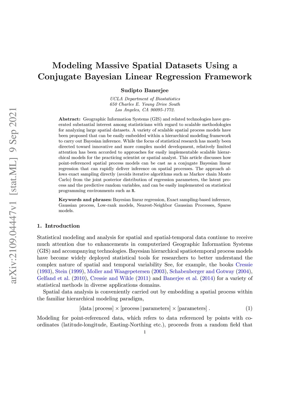 Geographic Information Systems (GIS) and related technologies have generated substantial interest among statisticians with regard to scalable methodologies for analyzing large spatial datasets. A variety of scalable spatial process models have been proposed that can be easily embedded within a hierarchical modeling framework to carry out Bayesian inference. While the focus of statistical research has mostly been directed toward innovative and more complex model development, relatively limited attention has been accorded to approaches for easily implementable scalable hierarchical models for the practicing scientist or spatial analyst. This article discusses how point-referenced spatial process models can be cast as a conjugate Bayesian linear regression that can rapidly deliver inference on spatial processes. The approach allows exact sampling directly (avoids iterative algorithms such as Markov chain Monte Carlo) from the joint posterior distribution of regression parameters, the latent process and the predictive random variables, and can be easily implemented on statistical programming environments such as R.