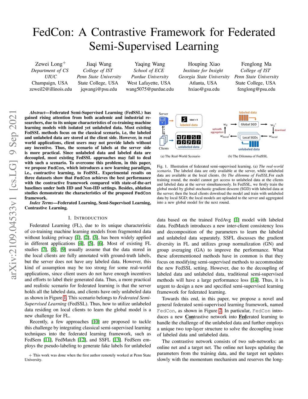 FedCon: A Contrastive Framework for Federated Semi-Supervised Learning