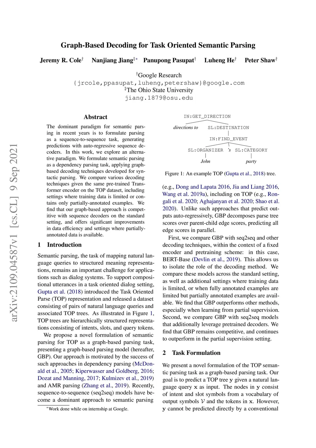 Graph-Based Decoding for Task Oriented Semantic Parsing