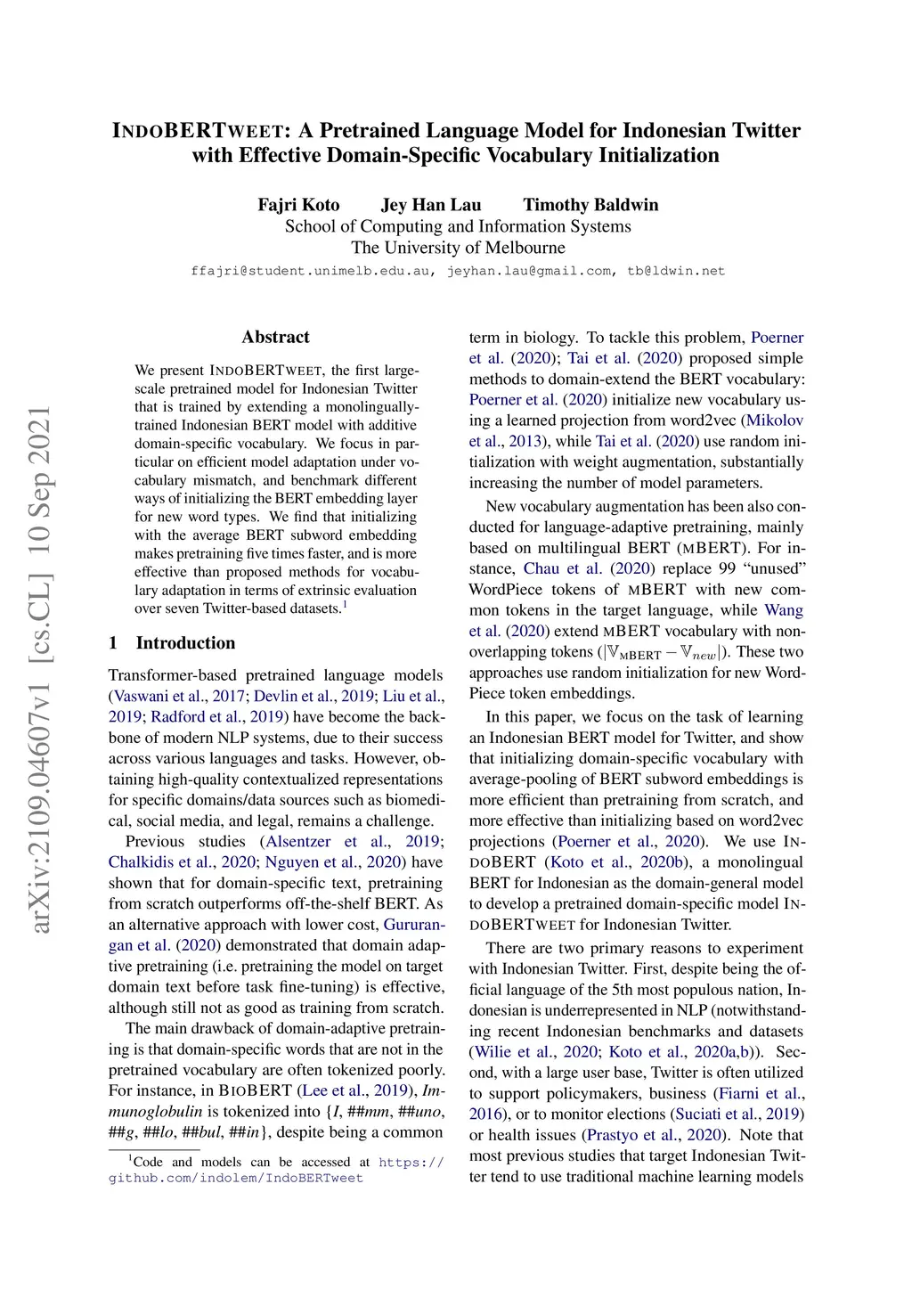 IndoBERTweet: A Pretrained Language Model for Indonesian Twitter with