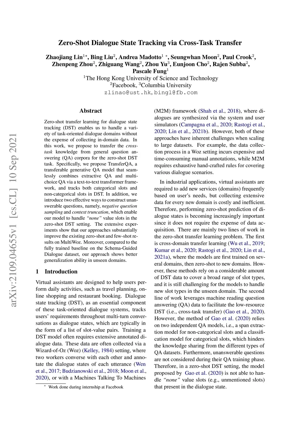 Zero-Shot Dialogue State Tracking via Cross-Task Transfer