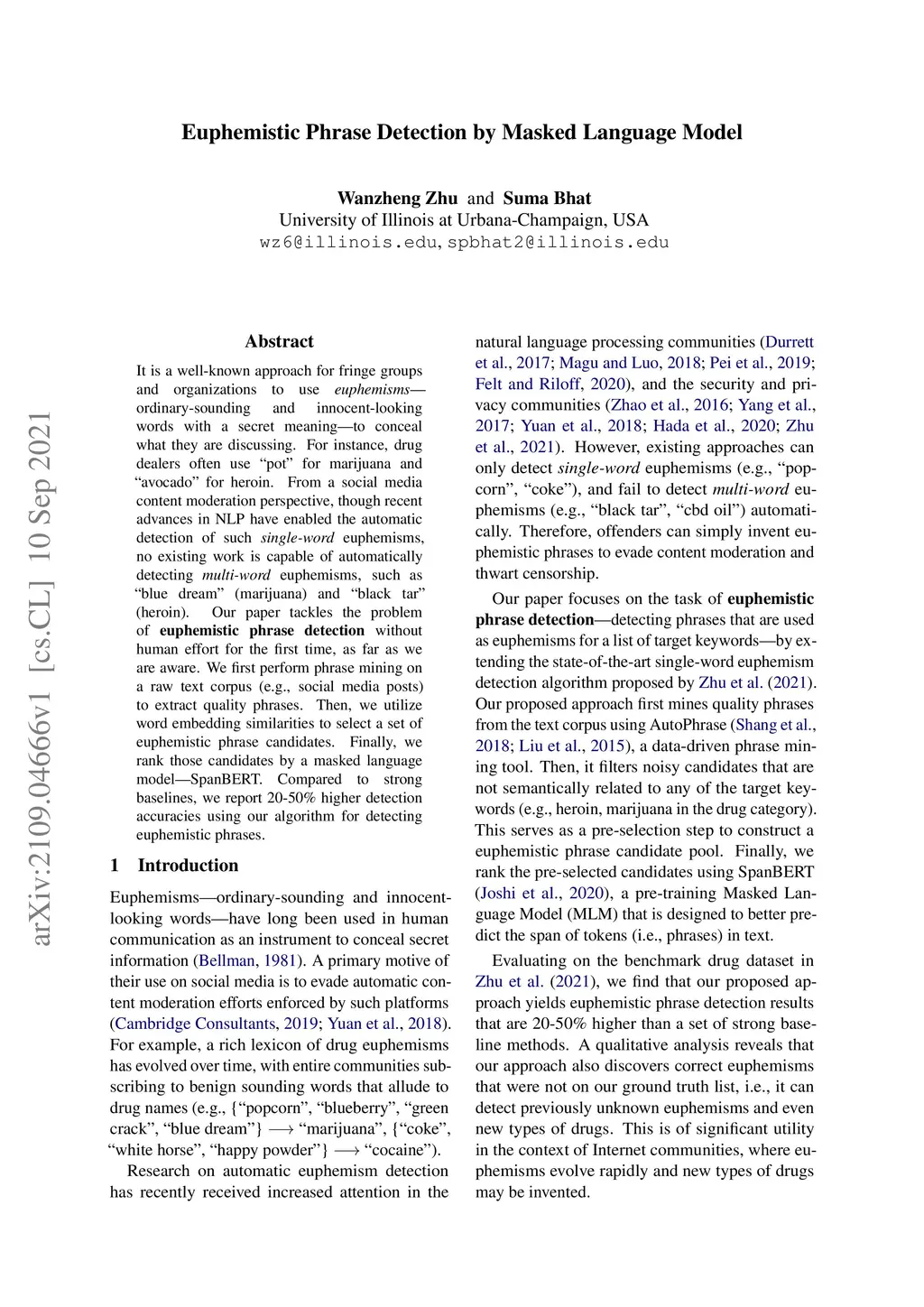 Euphemistic Phrase Detection by Masked Language Model