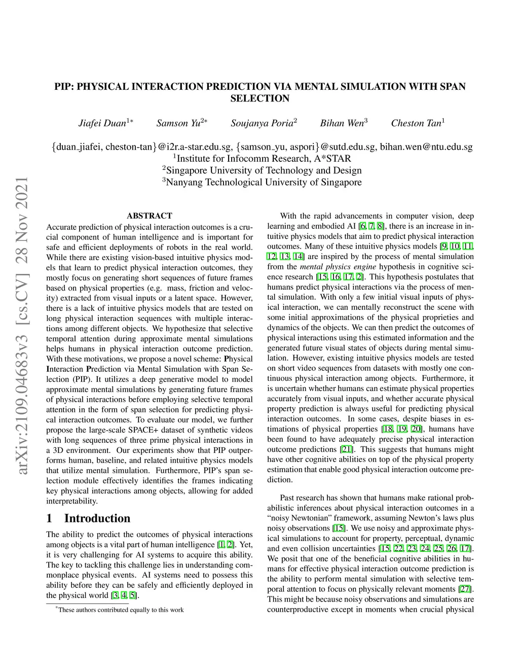 PIP: Physical Interaction Prediction via Mental Simulation with Span