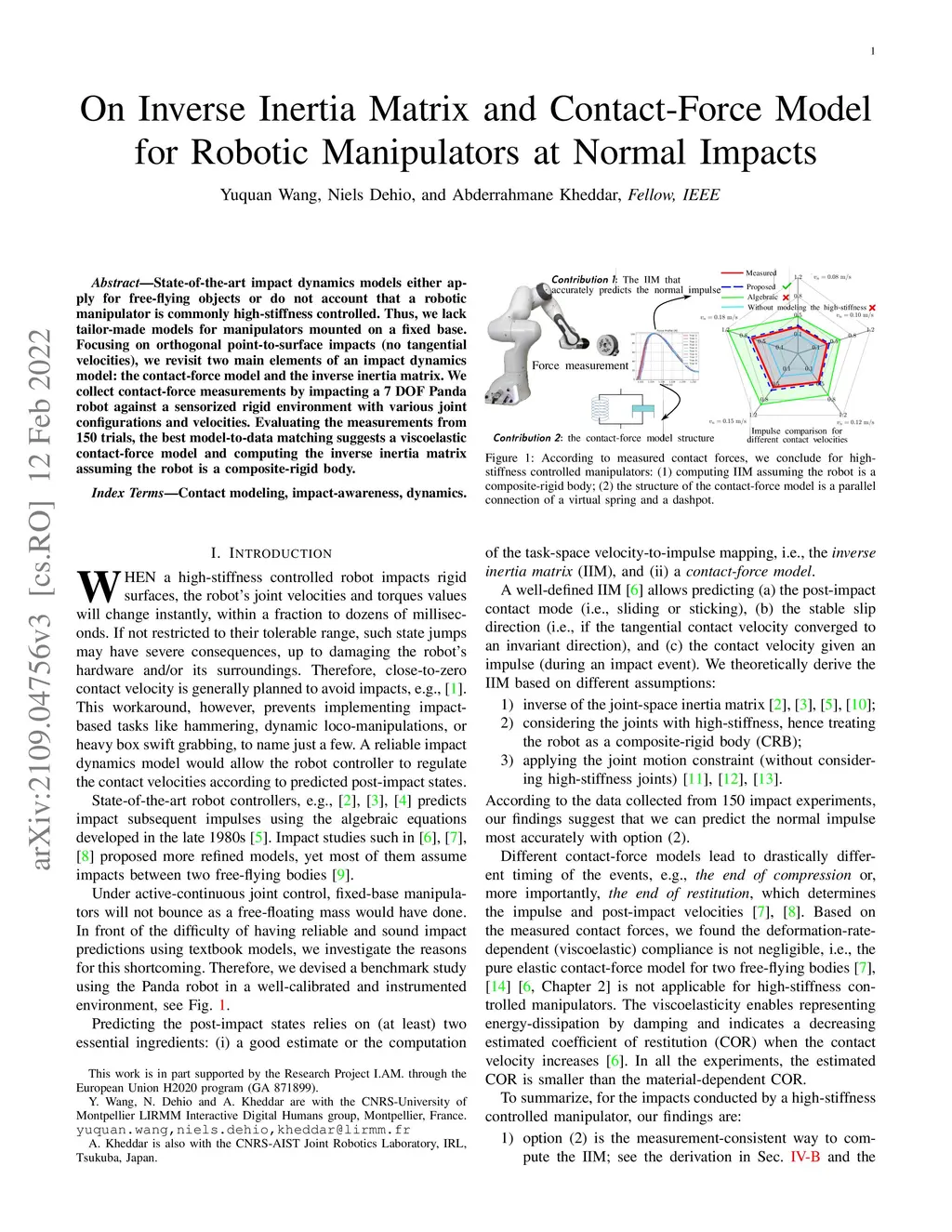 On Inverse Inertia Matrix and Contact-Force Model for Robotic