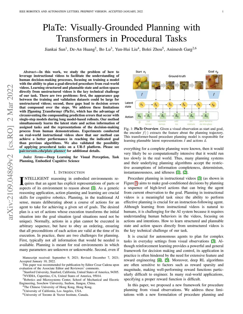 PlaTe: Visually-Grounded Planning with Transformers in Procedural Tasks