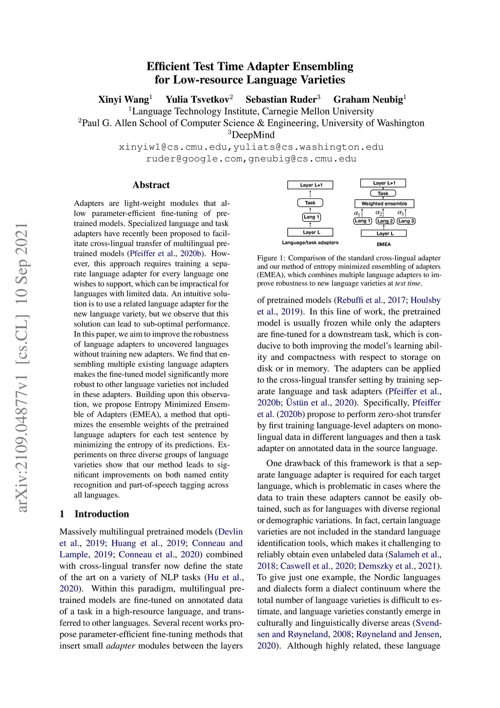 Efficient Test Time Adapter Ensembling for Low-resource Language