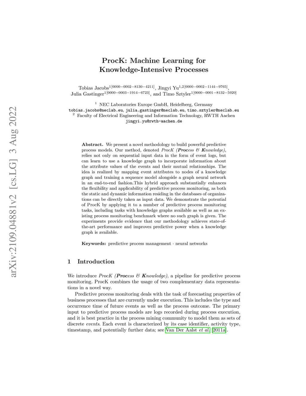 ProcK: Machine Learning for Knowledge-Intensive Processes