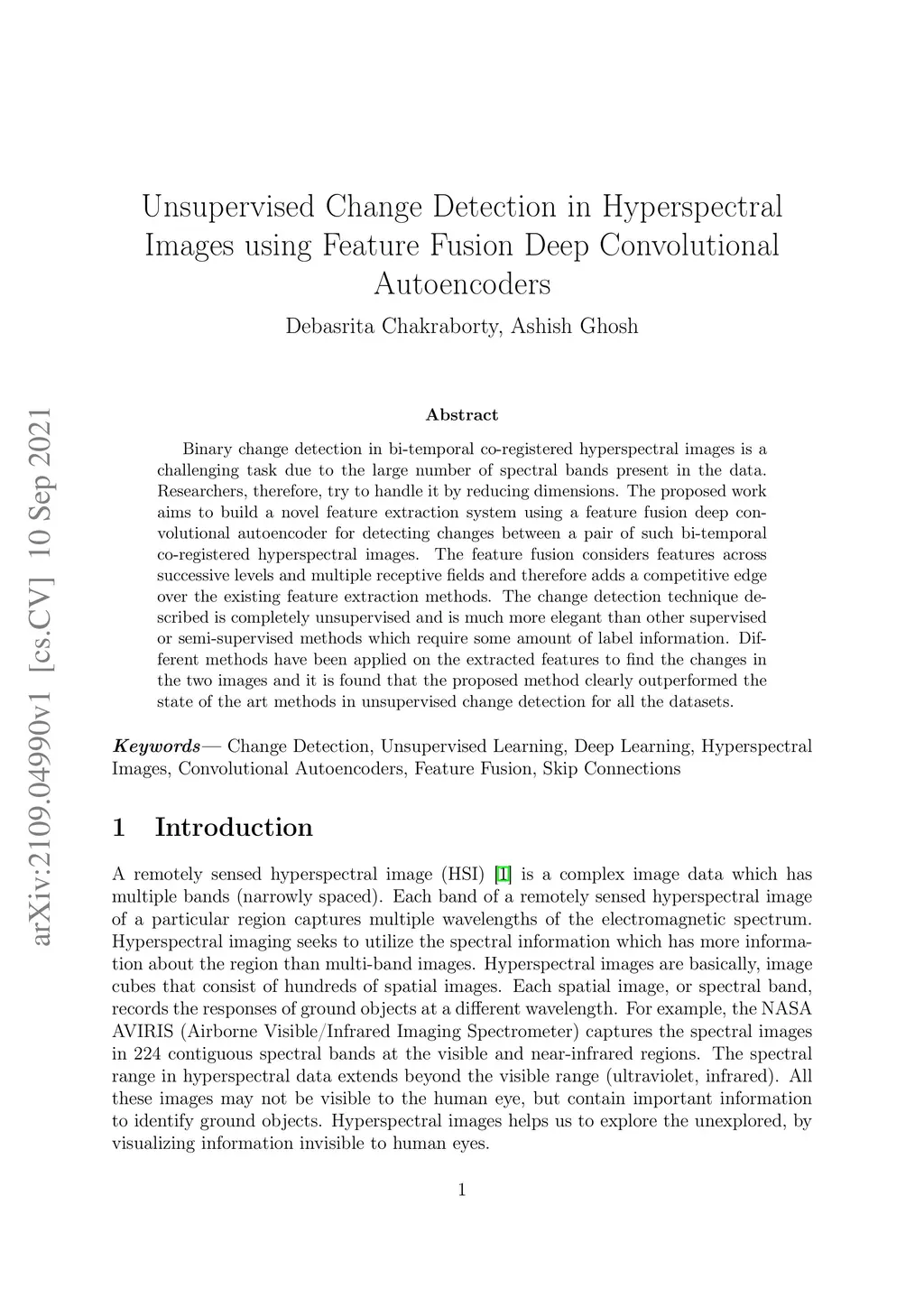 Unsupervised Change Detection in Hyperspectral Images using Feature