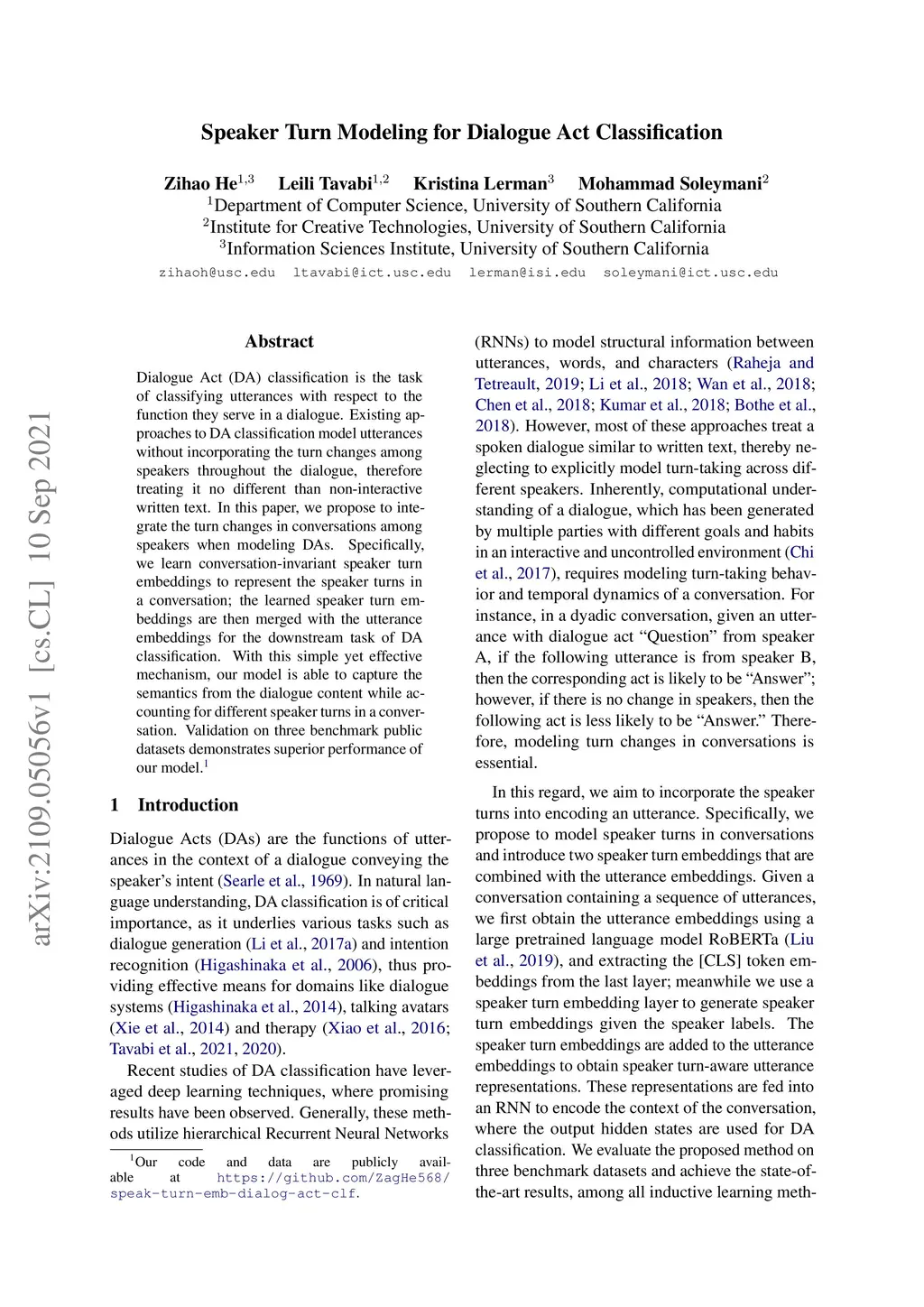 Dialogue Act (DA) classification is the task of classifying utterances with respect to the function they serve in a dialogue. Existing approaches to DA classification model utterances without incorporating the turn changes among speakers throughout the dialogue, therefore treating it no different than non-interactive written text. In this paper, we propose to integrate the turn changes in conversations among speakers when modeling DAs. Specifically, we learn conversation-invariant speaker turn embeddings to represent the speaker turns in a conversation; the learned speaker turn embeddings are then merged with the utterance embeddings for the downstream task of DA classification. With this simple yet effective mechanism, our model is able to capture the semantics from the dialogue content while accounting for different speaker turns in a conversation. Validation on three benchmark public datasets demonstrates superior performance of our model.