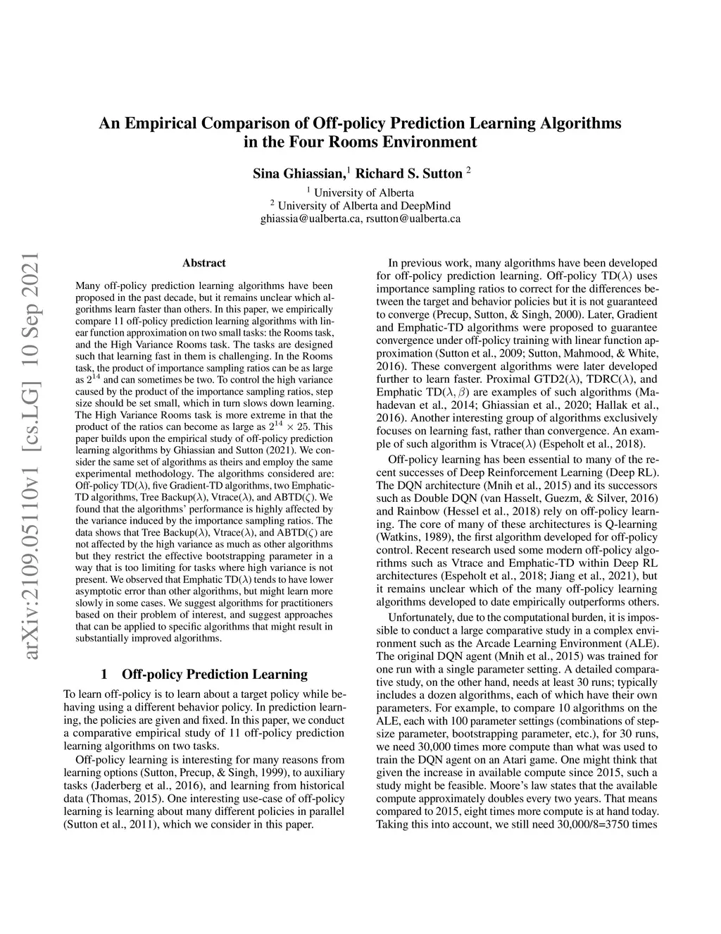 An Empirical Comparison of Off-policy Prediction Learning Algorithms in
