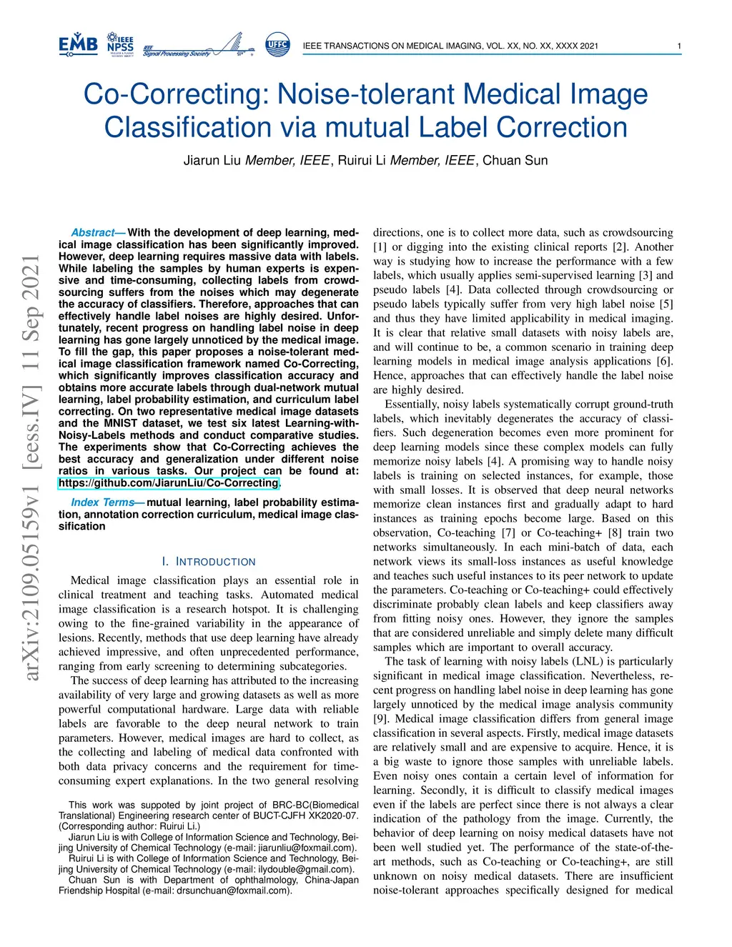 Co-Correcting: Noise-tolerant Medical Image Classification via mutual