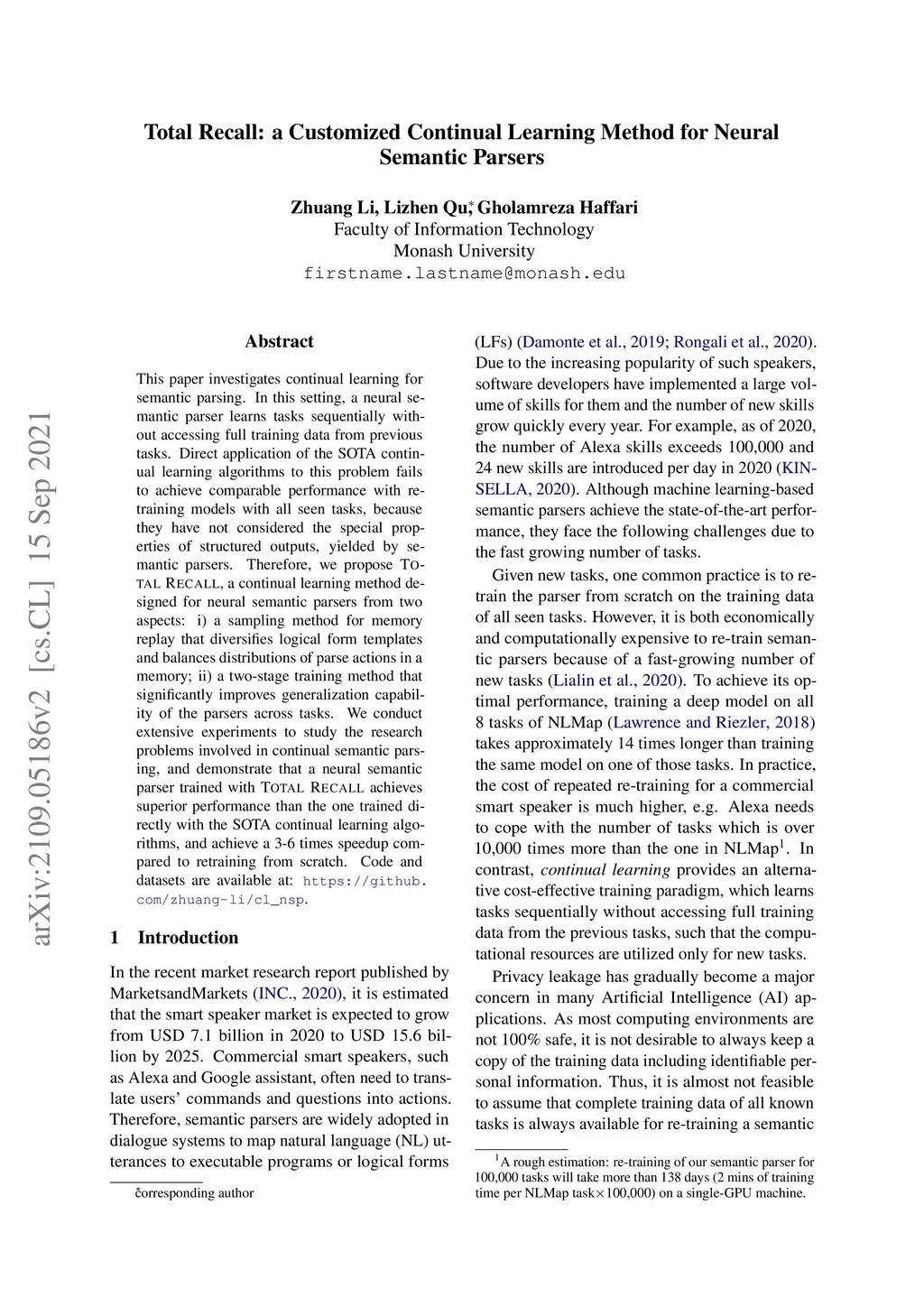 Total Recall: a Customized Continual Learning Method for Neural Semantic