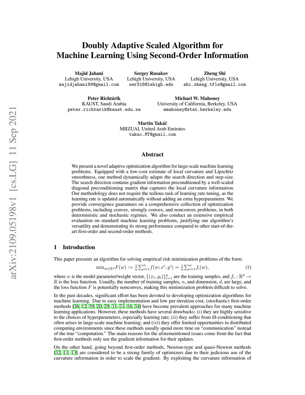 Doubly Adaptive Scaled Algorithm for Machine Learning Using Second-Order