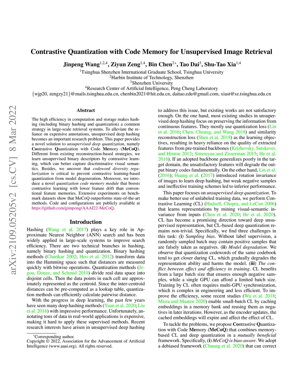 Contrastive Quantization with Code Memory for Unsupervised Image