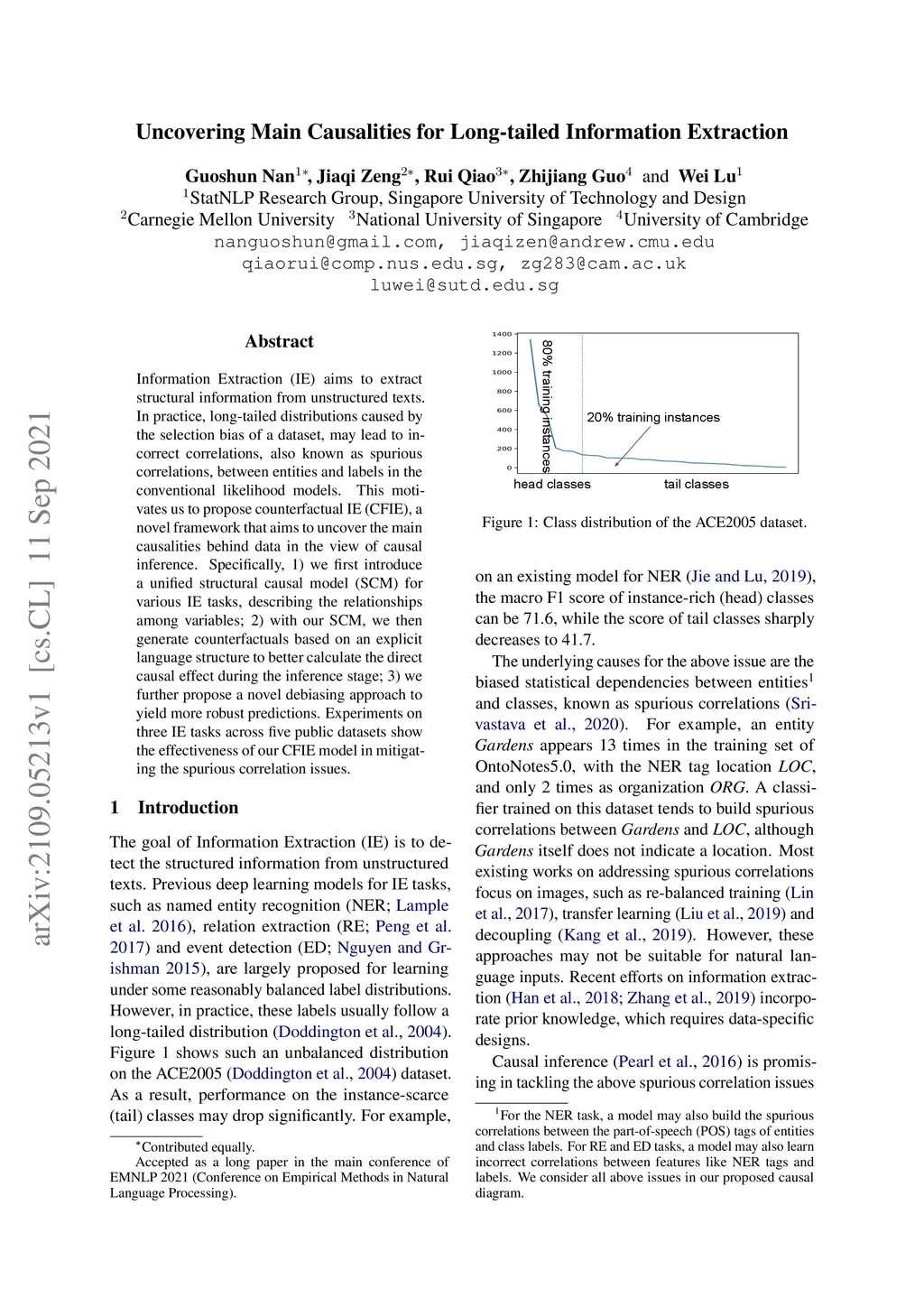 Uncovering Main Causalities for Long-tailed Information Extraction