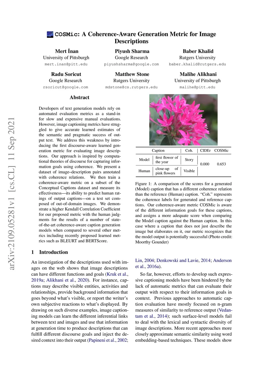 COSMic: A Coherence-Aware Generation Metric for Image Descriptions
