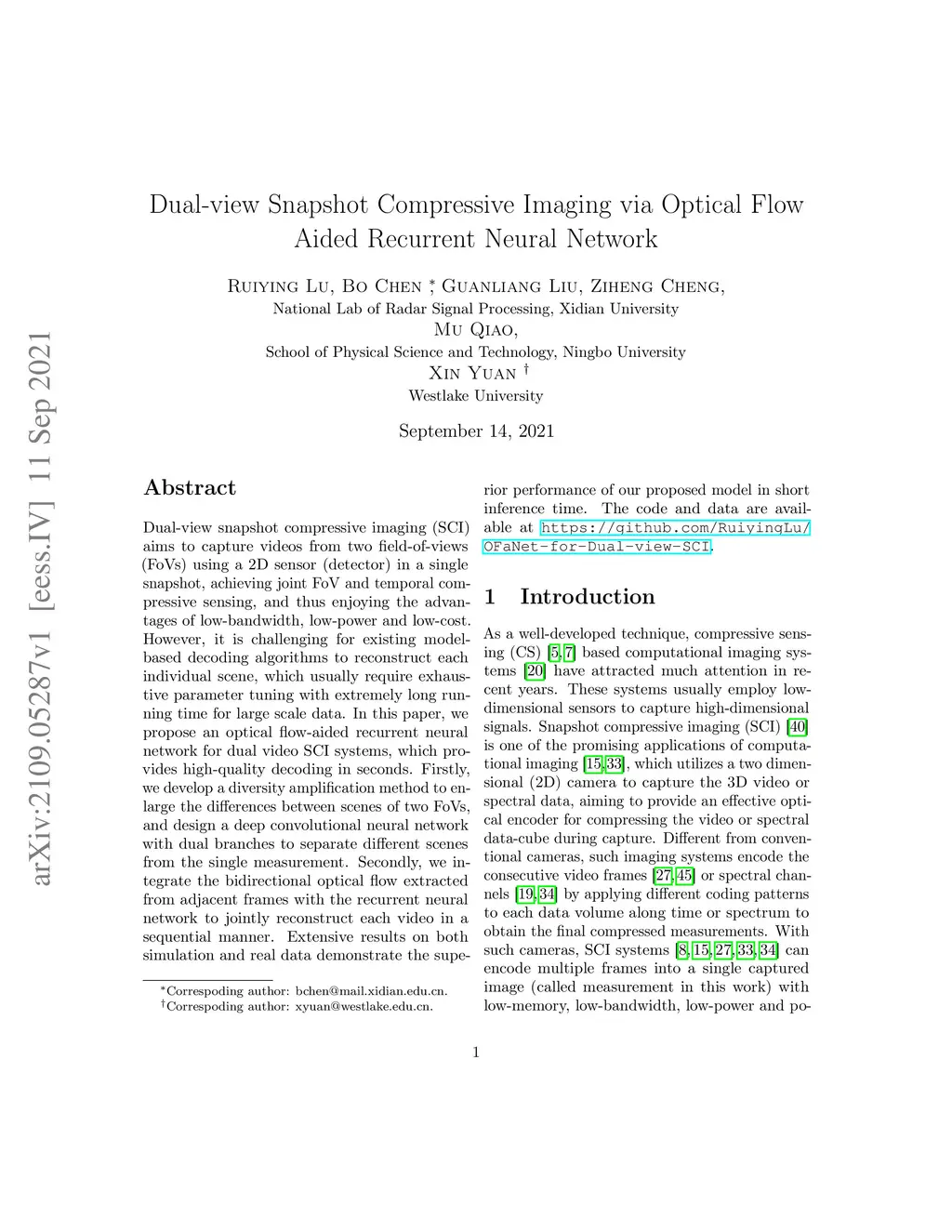 Dual-view Snapshot Compressive Imaging via Optical Flow Aided Recurrent