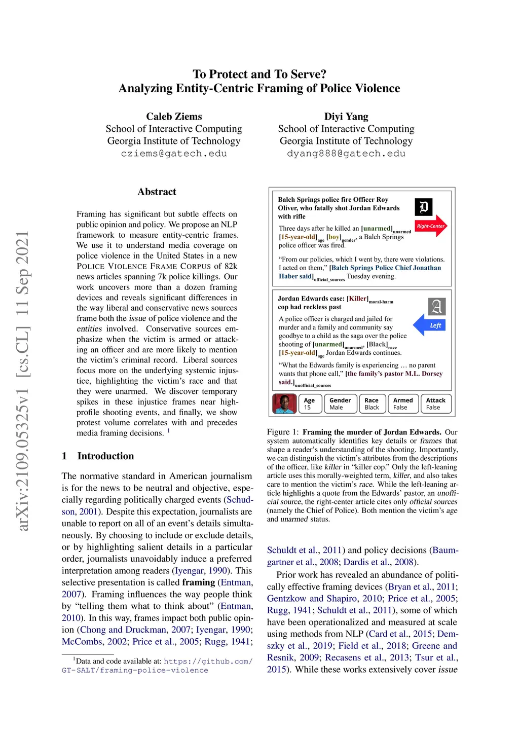 To Protect and To Serve? Analyzing Entity-Centric Framing of Police