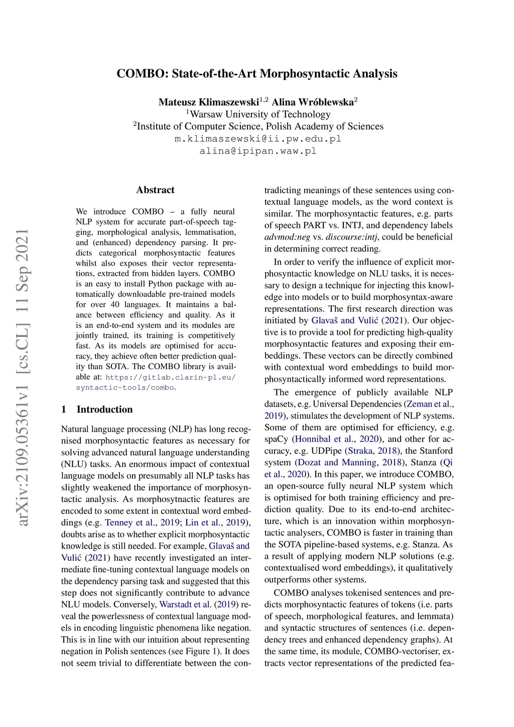 COMBO: State-of-the-Art Morphosyntactic Analysis