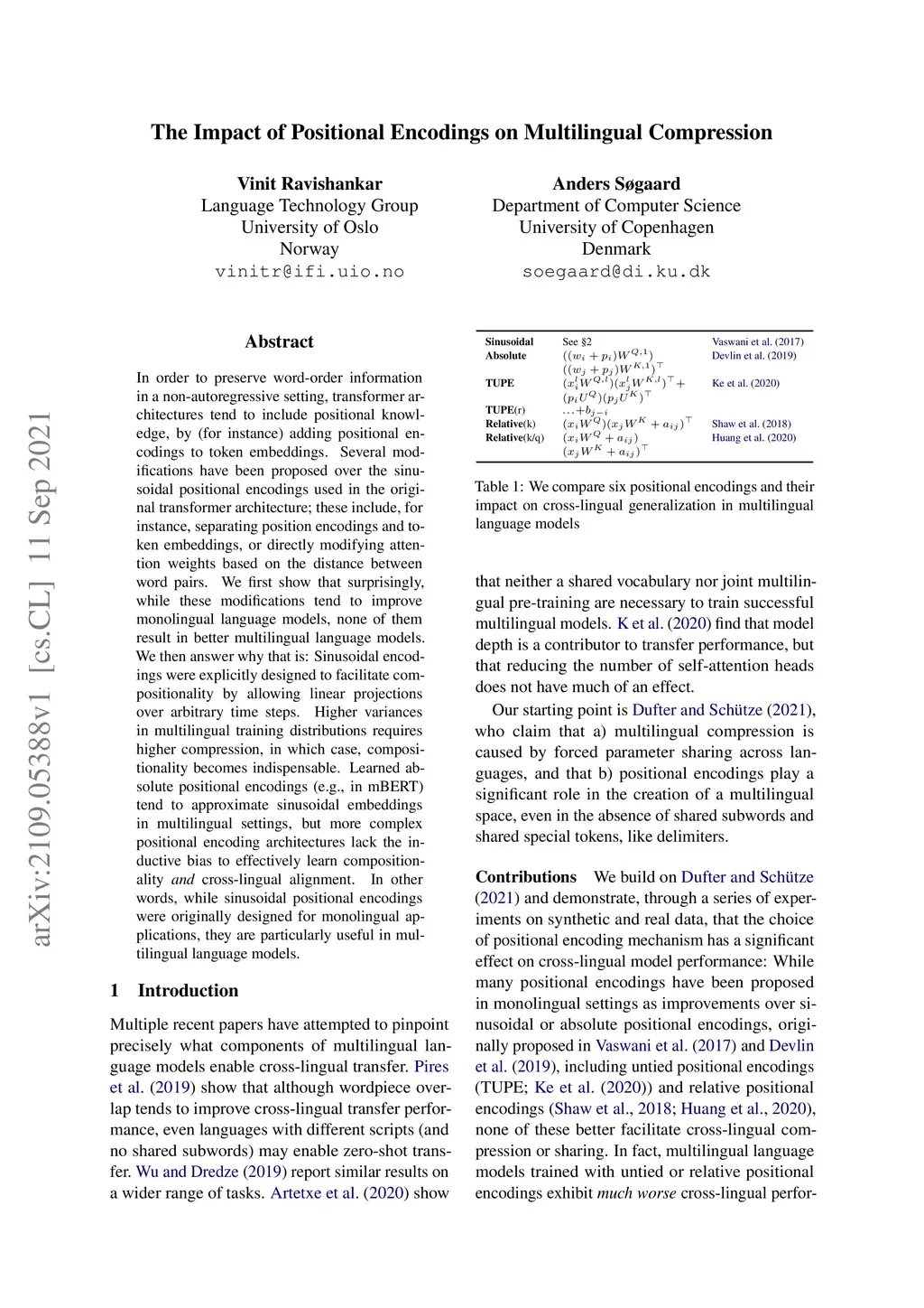 In order to preserve word-order information in a non-autoregressive setting, transformer architectures tend to include positional knowledge, by (for instance) adding positional encodings to token embeddings. Several modifications have been proposed over the sinusoidal positional encodings used in the original transformer architecture; these include, for instance, separating position encodings and token embeddings, or directly modifying attention weights based on the distance between word pairs. We first show that surprisingly, while these modifications tend to improve monolingual language models, none of them result in better multilingual language models. We then answer why that is: Sinusoidal encodings were explicitly designed to facilitate compositionality by allowing linear projections over arbitrary time steps. Higher variances in multilingual training distributions requires higher compression, in which case, compositionality becomes indispensable. Learned absolute positional encodings (e.g., in mBERT) tend to approximate sinusoidal embeddings in multilingual settings, but more complex positional encoding architectures lack the inductive bias to effectively learn compositionality and cross-lingual alignment. In other words, while sinusoidal positional encodings were originally designed for monolingual applications, they are particularly useful in multilingual language models.