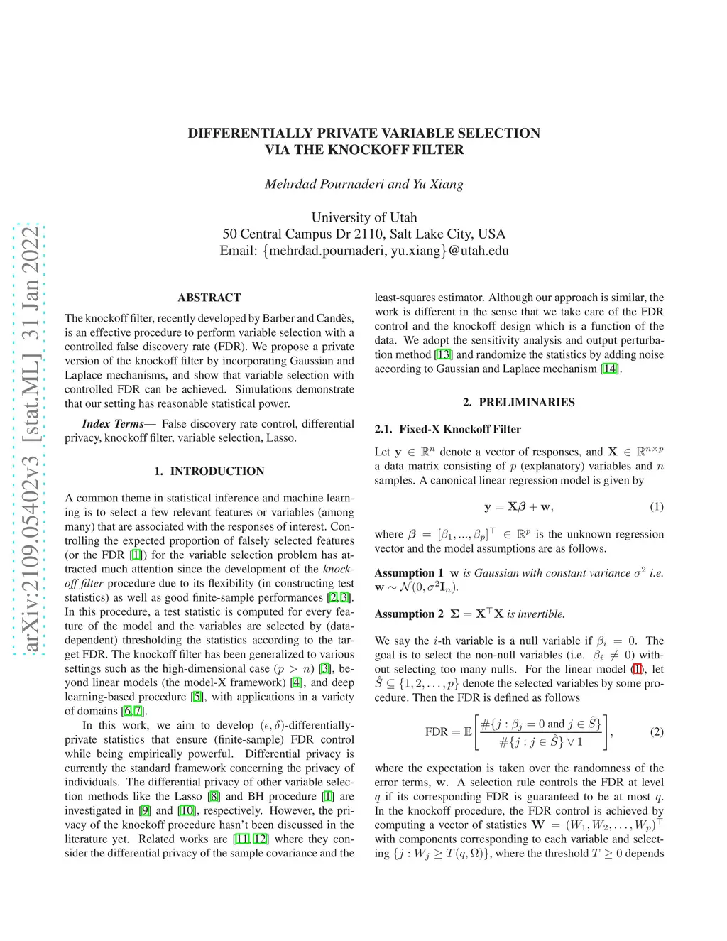 The knockoff filter, recently developed by Barber and Candes, is an effective procedure to perform variable selection with a controlled false discovery rate (FDR). We propose a private version of the knockoff filter by incorporating Gaussian and Laplace mechanisms, and show that variable selection with controlled FDR can be achieved. Simulations demonstrate that our setting has reasonable statistical power.