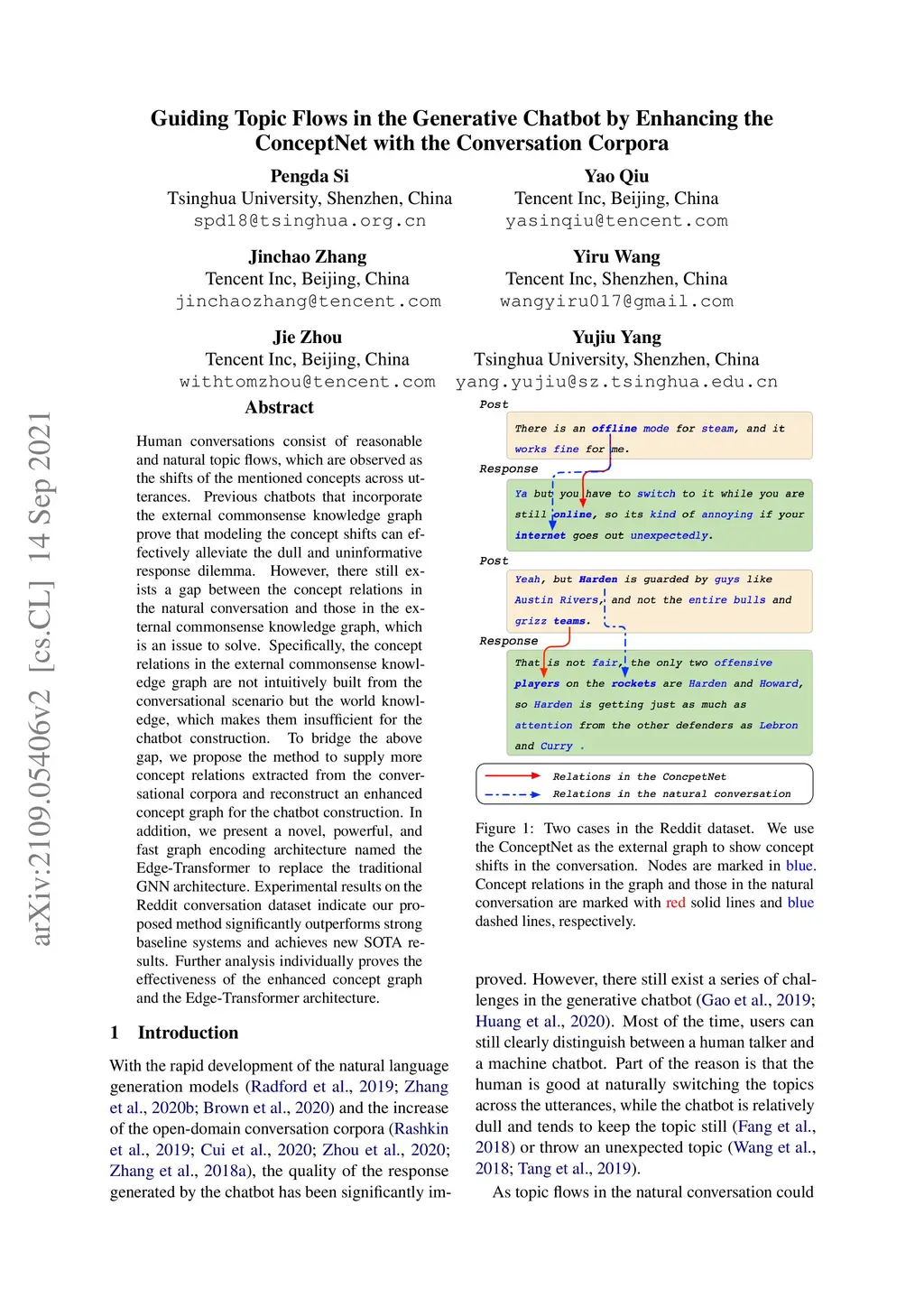 Human conversations consist of reasonable and natural topic flows, which are observed as the shifts of the mentioned concepts across utterances. Previous chatbots that incorporate the external commonsense knowledge graph prove that modeling the concept shifts can effectively alleviate the dull and uninformative response dilemma. However, there still exists a gap between the concept relations in the natural conversation and those in the external commonsense knowledge graph, which is an issue to solve. Specifically, the concept relations in the external commonsense knowledge graph are not intuitively built from the conversational scenario but the world knowledge, which makes them insufficient for the chatbot construction. To bridge the above gap, we propose the method to supply more concept relations extracted from the conversational corpora and reconstruct an enhanced concept graph for the chatbot construction. In addition, we present a novel, powerful, and fast graph encoding architecture named the Edge-Transformer to replace the traditional GNN architecture. Experimental results on the Reddit conversation dataset indicate our proposed method significantly outperforms strong baseline systems and achieves new SOTA results. Further analysis individually proves the effectiveness of the enhanced concept graph and the Edge-Transformer architecture.