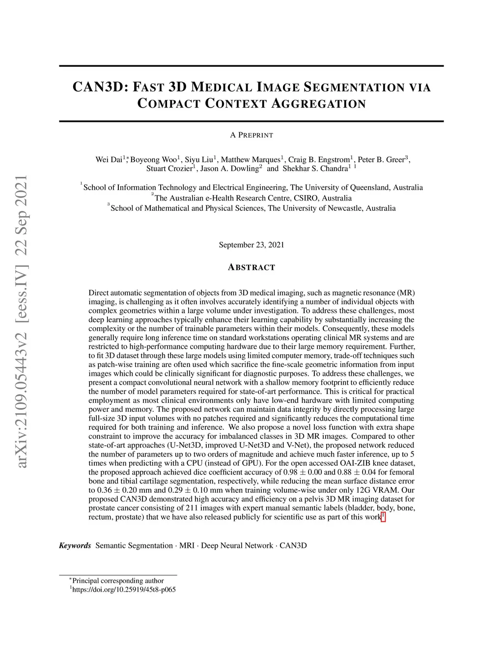 CAN3D: Fast 3D Medical Image Segmentation via Compact Context